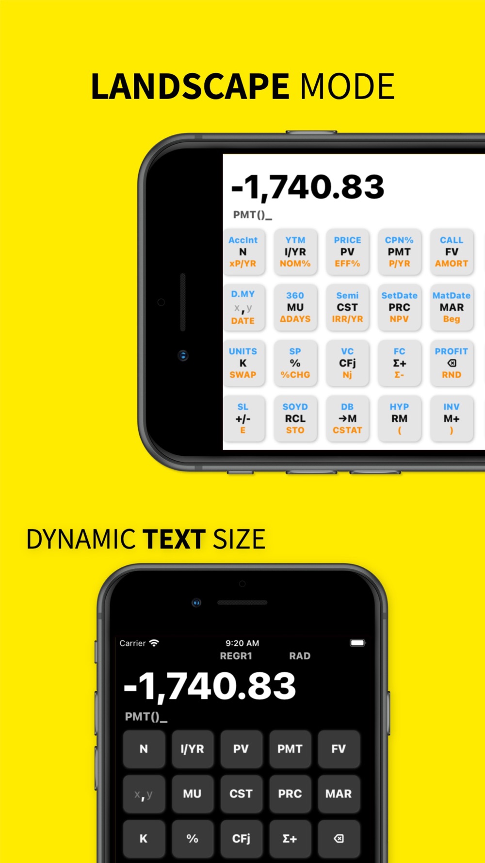 Can be used in classic mode with keys, features, and experience comparable to an HP 10bii financial calculator (⌘). Or use easy interactive menus and prompts for all financial functions including convenient table and list displays.