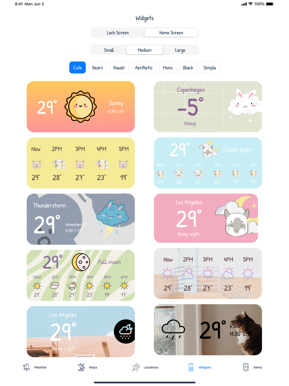 Searching for an aesthetic weather app that combines function and cuteness? Cute Weather let's you customise your iphone's home screen with widgets, wallpapers and icons. Compatible for iOS14, iOS15 & iOS16. Additionally the whole weather app itself can be customised. Choose between weather layouts, icons, widgets and wallpapers and customize backgrounds, fonts and colours. Cute Weather - the only functional and fun weather app!