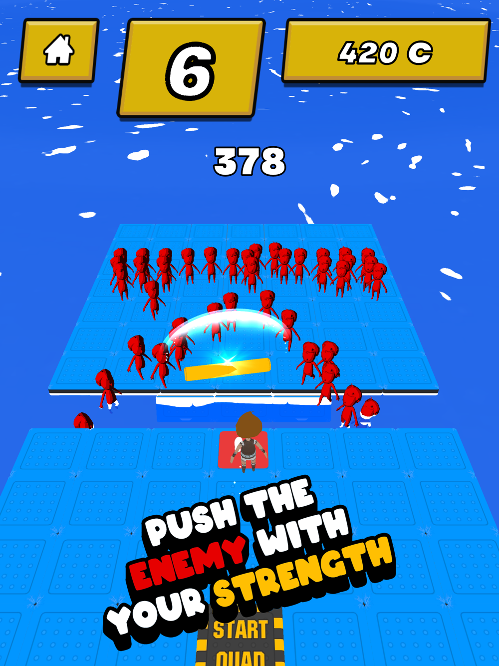 Trace your way to the end of the level and push the enemies with your stick on the way!