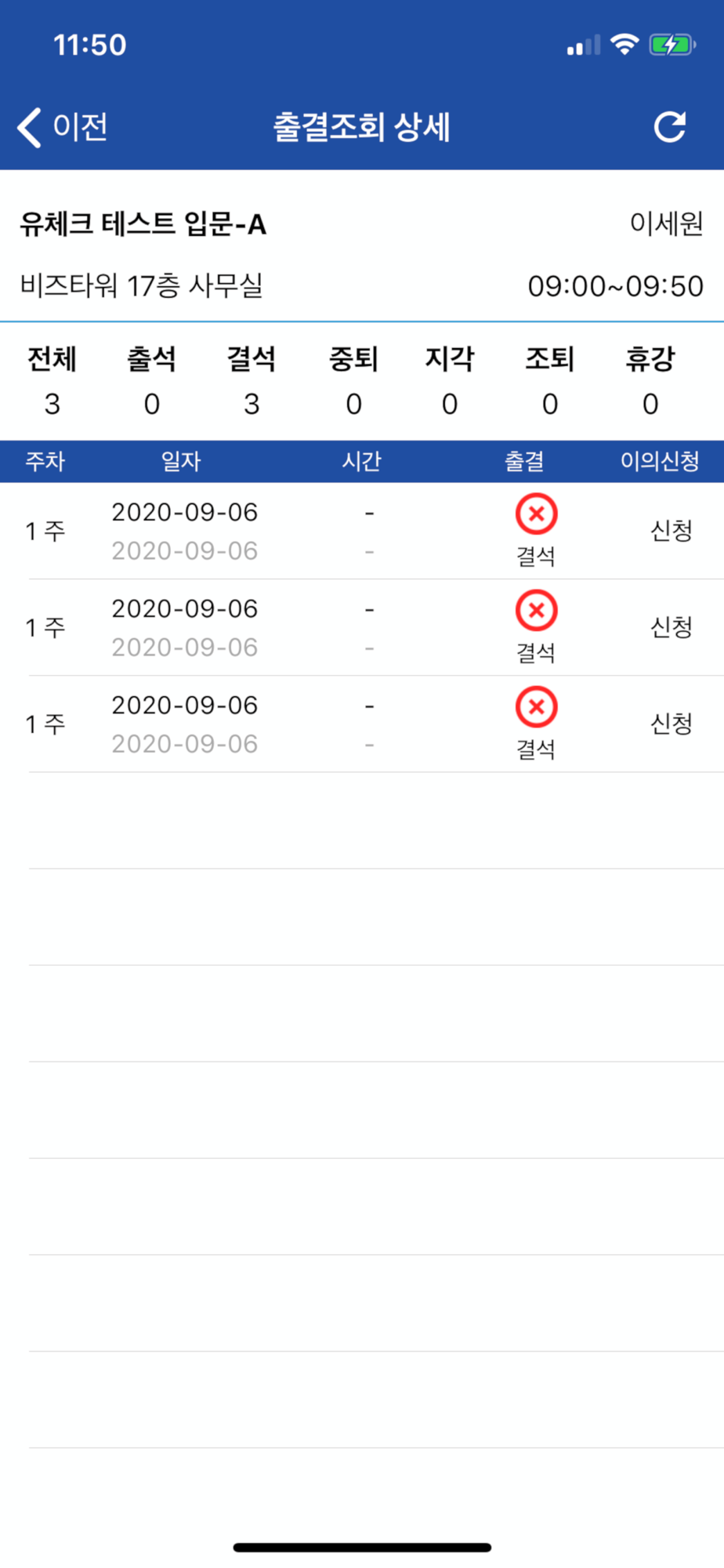 초기 스마트 ID 화면에서 본인의 QR코드를 출입통제단말기에 인식 시키면 출입이 가능합니다.