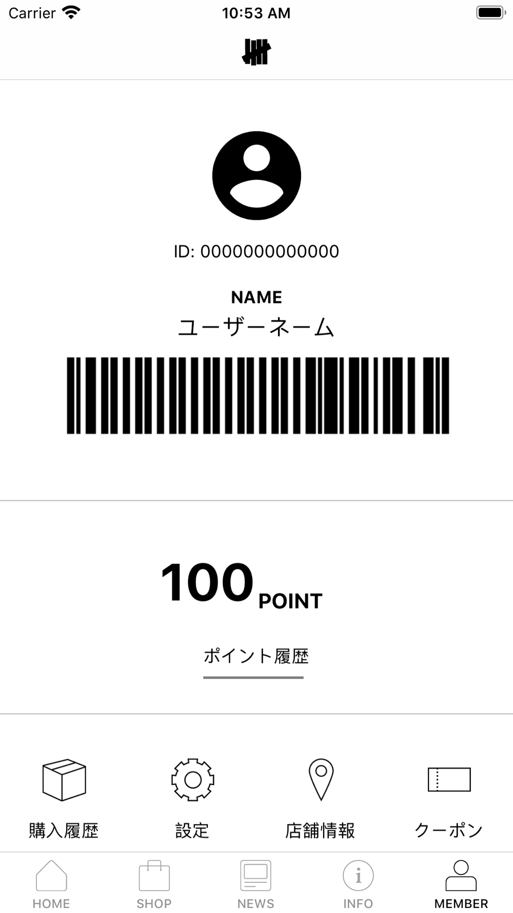 実店舗で提示するバーコードの表示や、各種情報確認&設定変更が可能です。