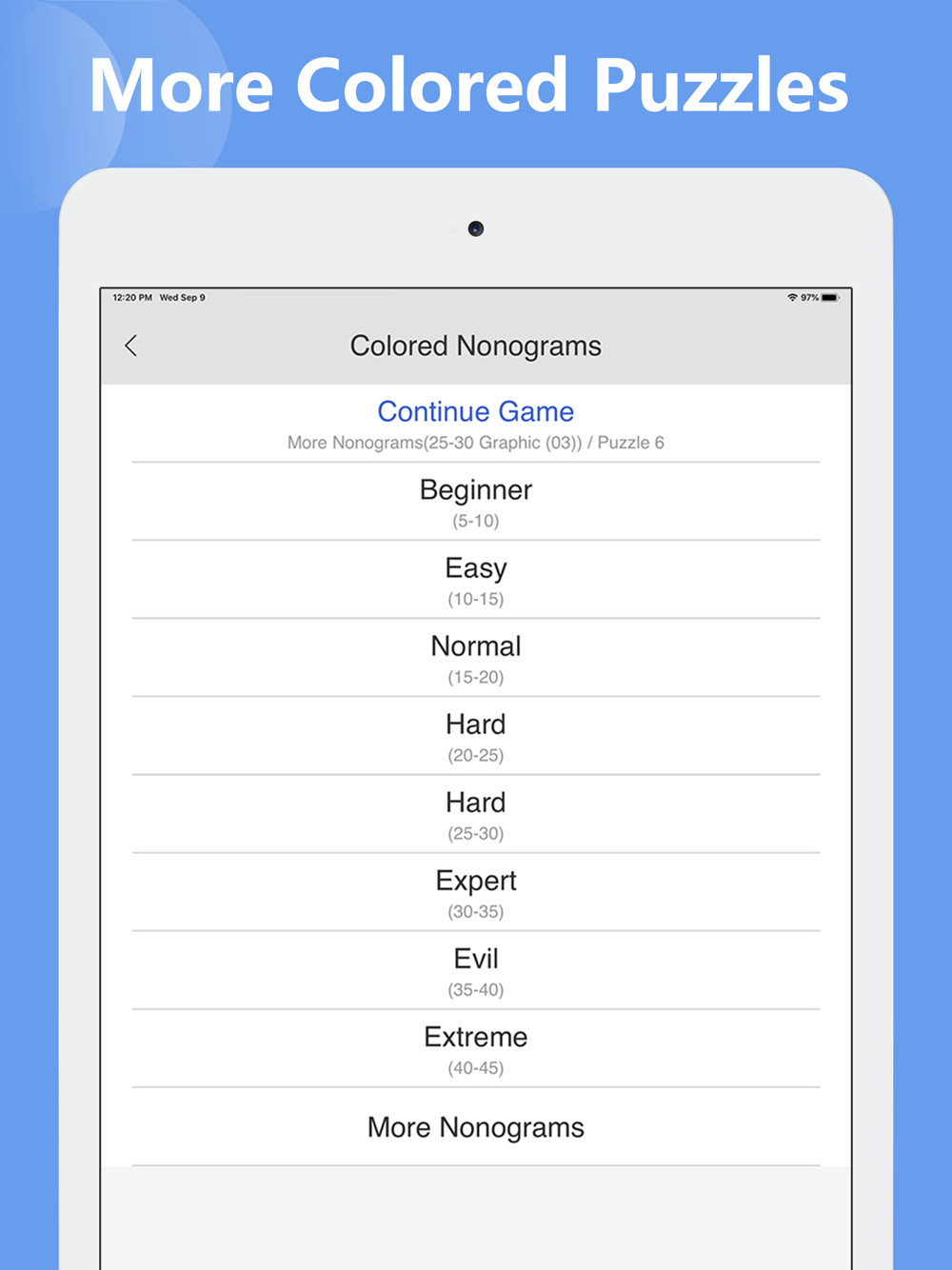 - All puzzles are sorted by groups from 5x5 to 50x50