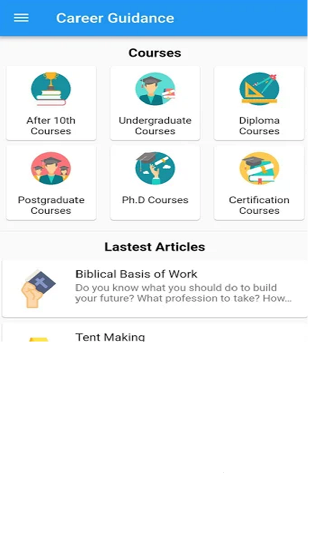 To tick the right one among multiple options is difficult in deciding anything that has a lasting impact on our lives. Those who are God-centered will go by Godly principles rather than what the world popularizes. Career Guidance Cell of NEGF has developed an App that is apt for such decision-makers who wonder which path would be the best. It brings to you a collection of varied articles on topics relevant to anyone who wants to know Godly principles and available avenues. It also throws light on tent-making apart from giving information on scholarships. The CG Cell is aiming at providing linkage to job opportunities also in the future.