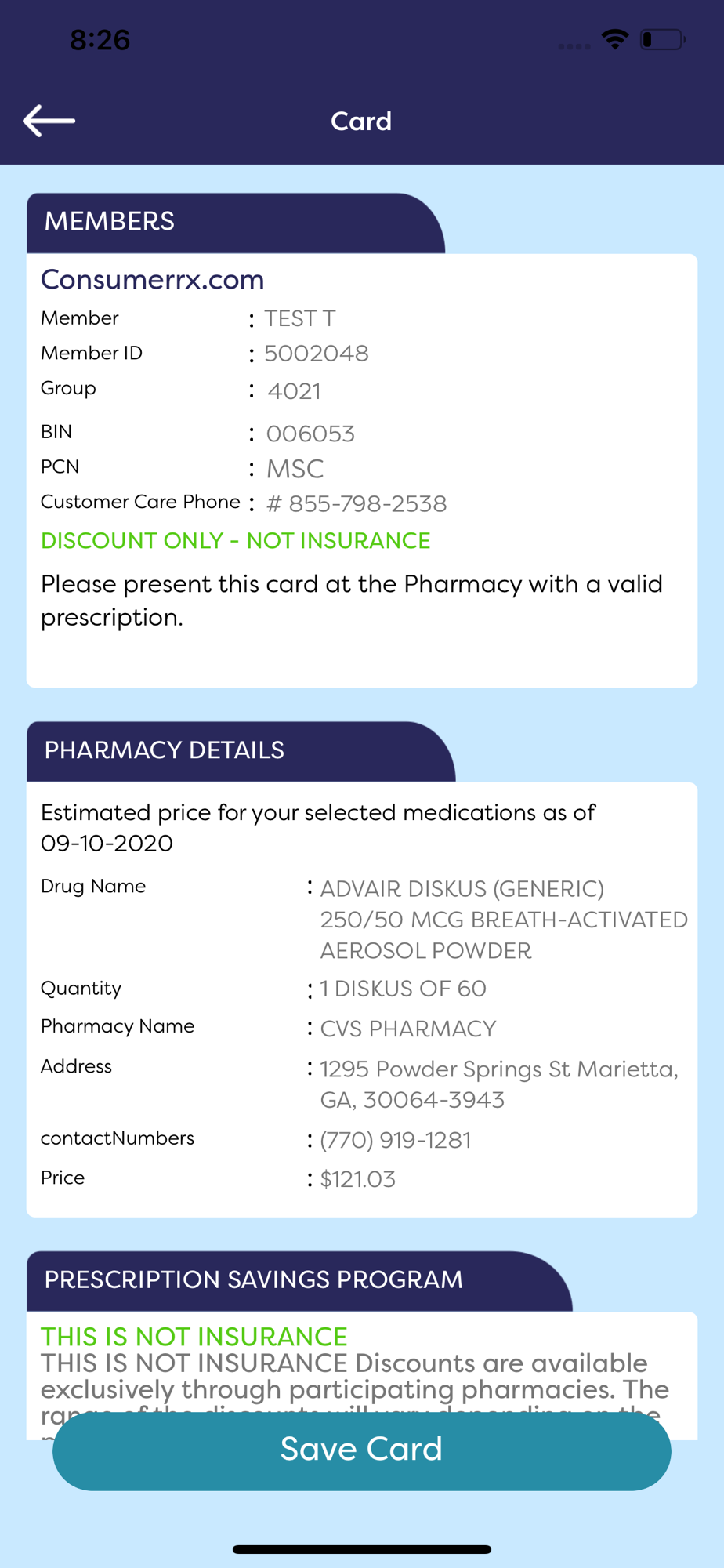 CONSUMER RX is a discount prescription drug program and was created to help members save on