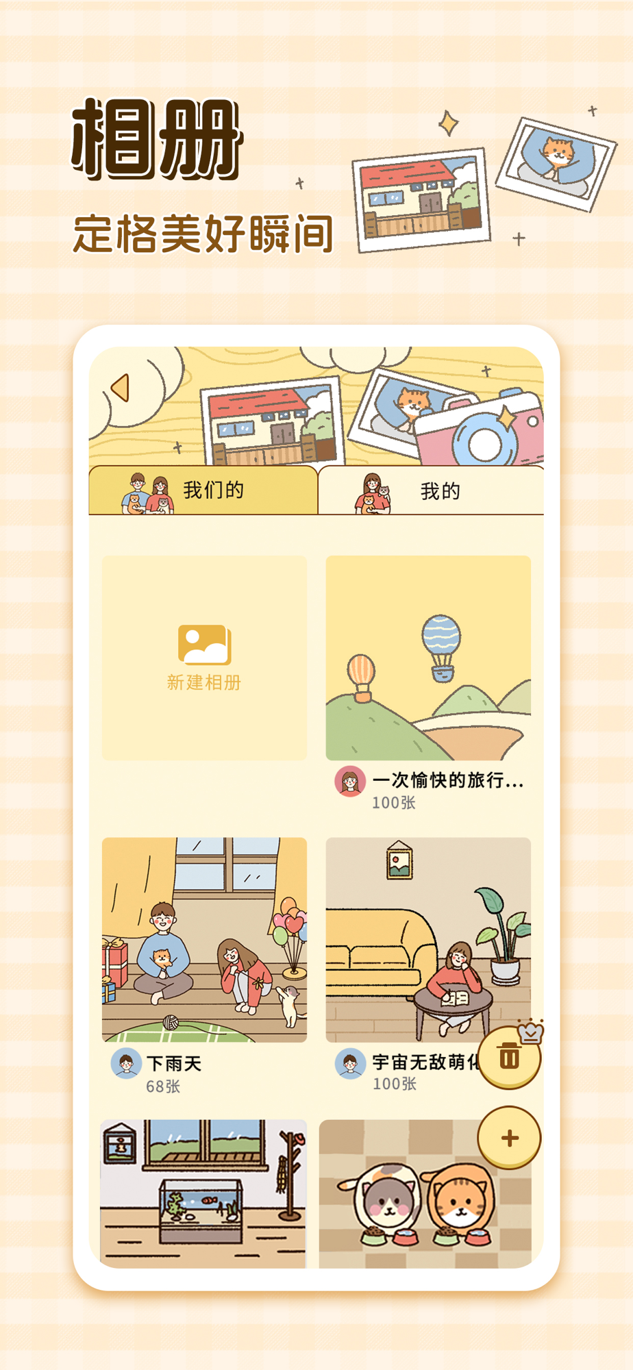 卡普喔鼓励每位小可爱用心发现并记录身边美好,在此提供了相册、点滴、纪念日和愿望清单四大功能以便小可爱们全方位记录。