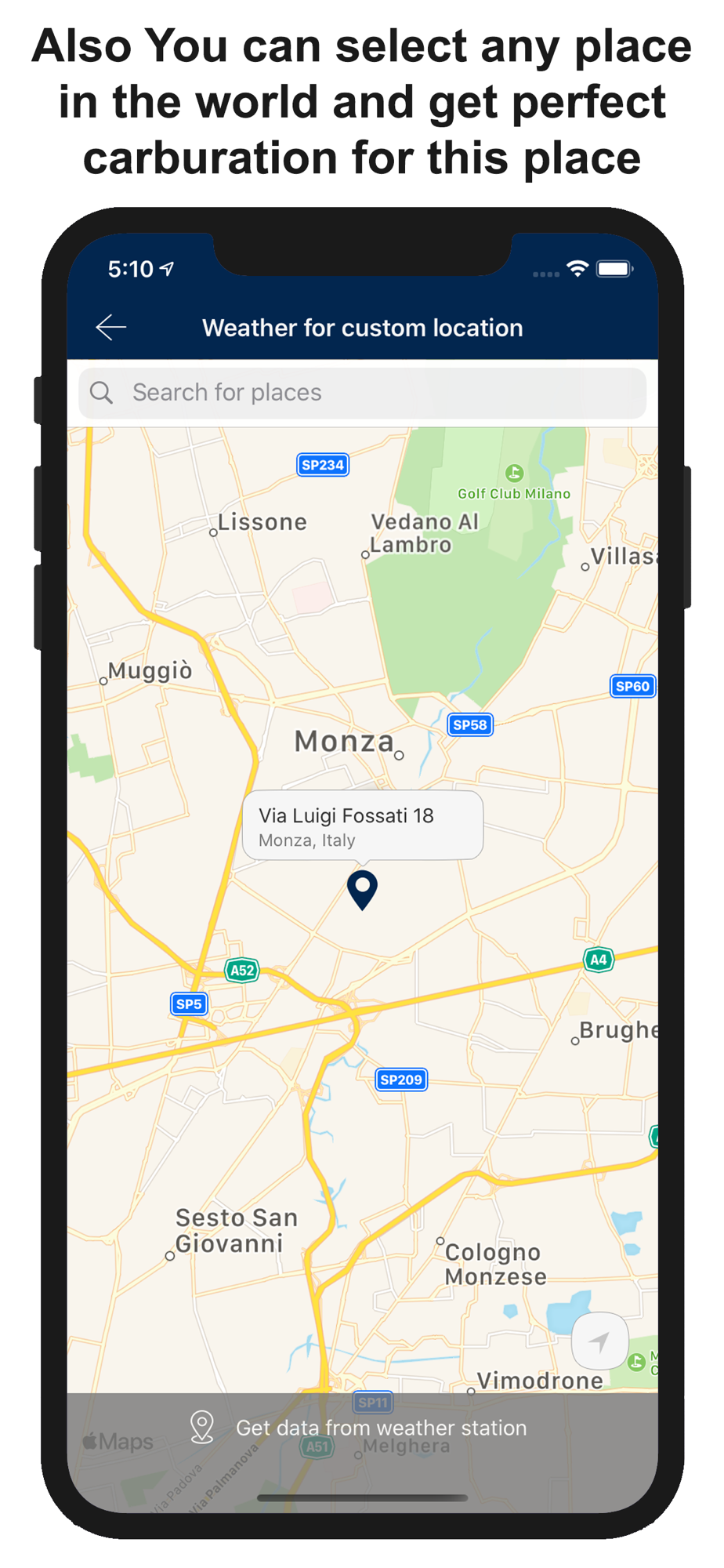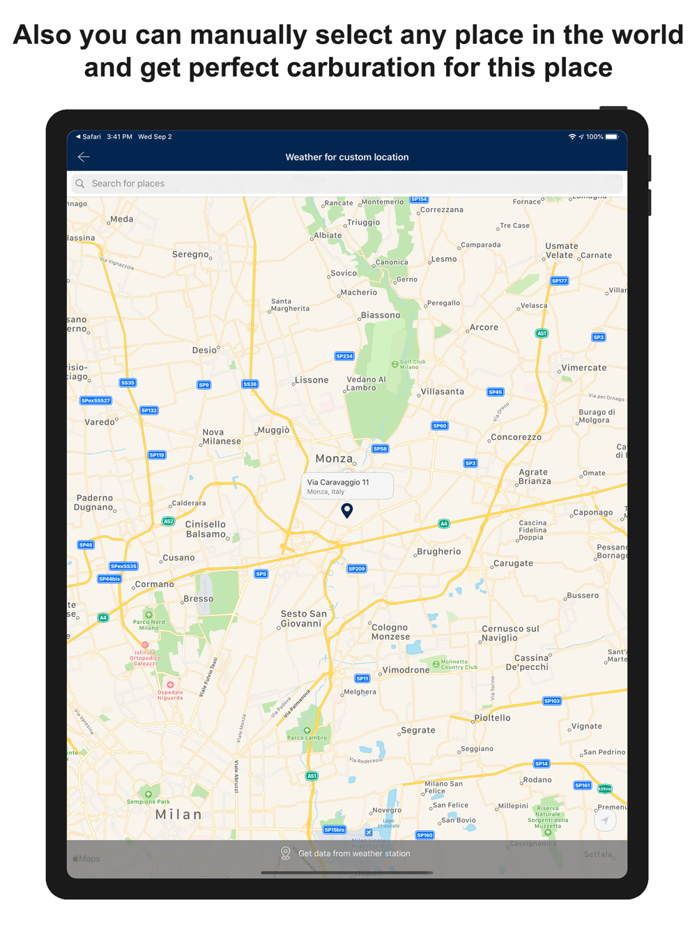 • If you don't want to share your location, you can manually select any place in the world, the carburetor config will be adapted for this place
