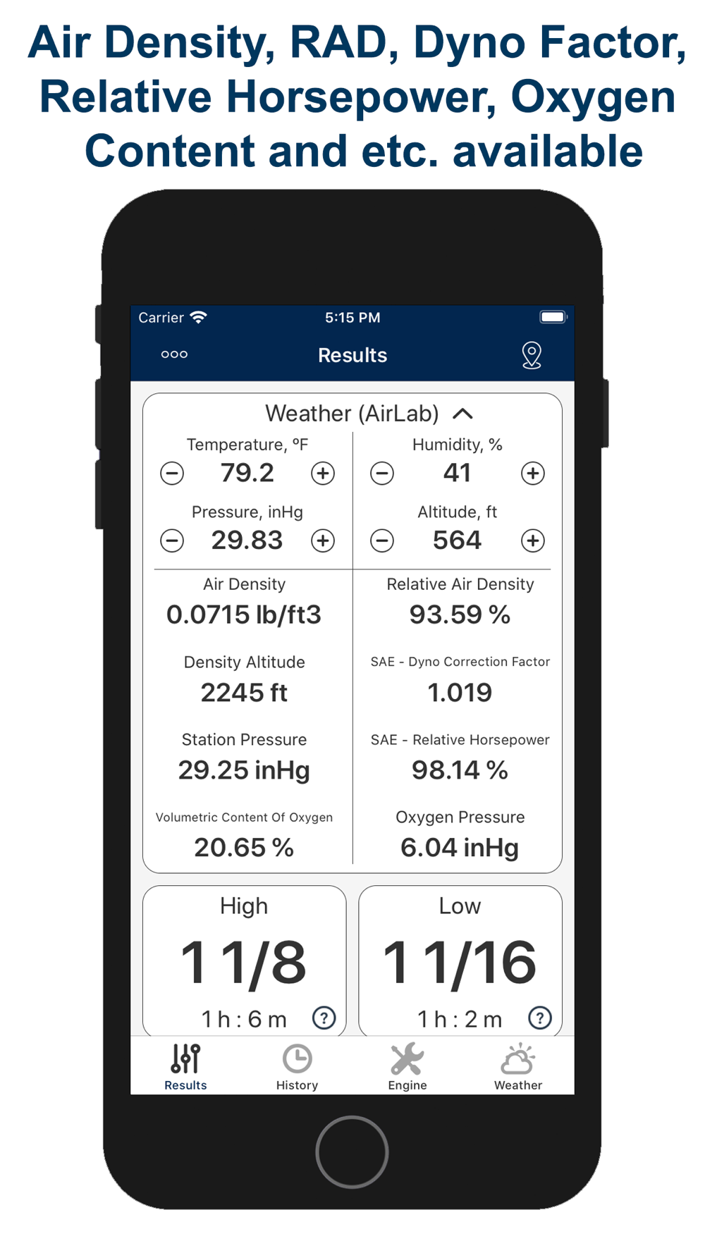 • Added new feature: get weather (temperature, pressure, humidity) via Bluetooth using weather stations: Kestrel DROP, Kestrel 5x00, WeatherFlow WEATHERmeter, Skywatch BL• Added new feature: added the ability to calibrate the barometer built into your phone or tablet (go to the “Settings“ tab, then “Measurement units“)• Added new feature: added various utilities (unit converters) (go to the “Settings“ tab, then “Utils“)• We have improved our weather calculator significantly. Now you can manually select which type of atmospheric pressure you are working with (for example if you use portable barometers, weather stations):- sea level pressure QNH- sea level pressure QFF- station pressure (barometric pressure)• On the results tab, click on the drop-down menu 'Weather (AirLab)', new data for tuners are available: Air Density, Relative Air Density, Density Altitude, Station Pressure, SAE - Dyno Correction Factor, SAE - Relative Horsepower, Volumetric Content Of Oxygen, Oxygen Pressure• Added a new value for each carburetor configuration on the 'Results' tab: Throttle valve size• Improved functionality for the feature 'Weather for custom location'. We added a search bar where you can enter the location name. Search places easier and faster now• We added new fuels, this is gasoline with ethanol. It require a richer carburation than regular premium gasoline• Improved functionality and accuracy of fuel calculator• Bug fixes for 'share setup with friends' feature• Fixes for showing 'Carburetor icing alert', now it doesn't overlap other content• We reworked the altitude determination algorithm for the 'weather for custom location' feature. We hope that now, if you manually selected your location, the altitude will be calculated with much greater accuracy
