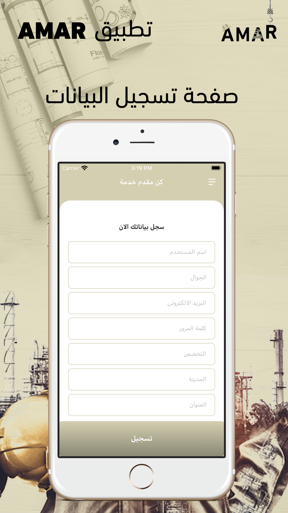 تطبيق عمار من التطبيقات الرائده فى تقديم خدمات التصميم فى الشرق الاوسط حيث يقدم الخبره الفنيه والمعرفه لدعم الجهود التى تشجع تنمية المجتمعات العمرانية .