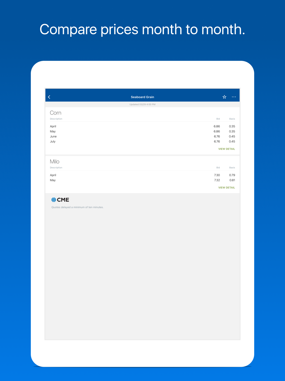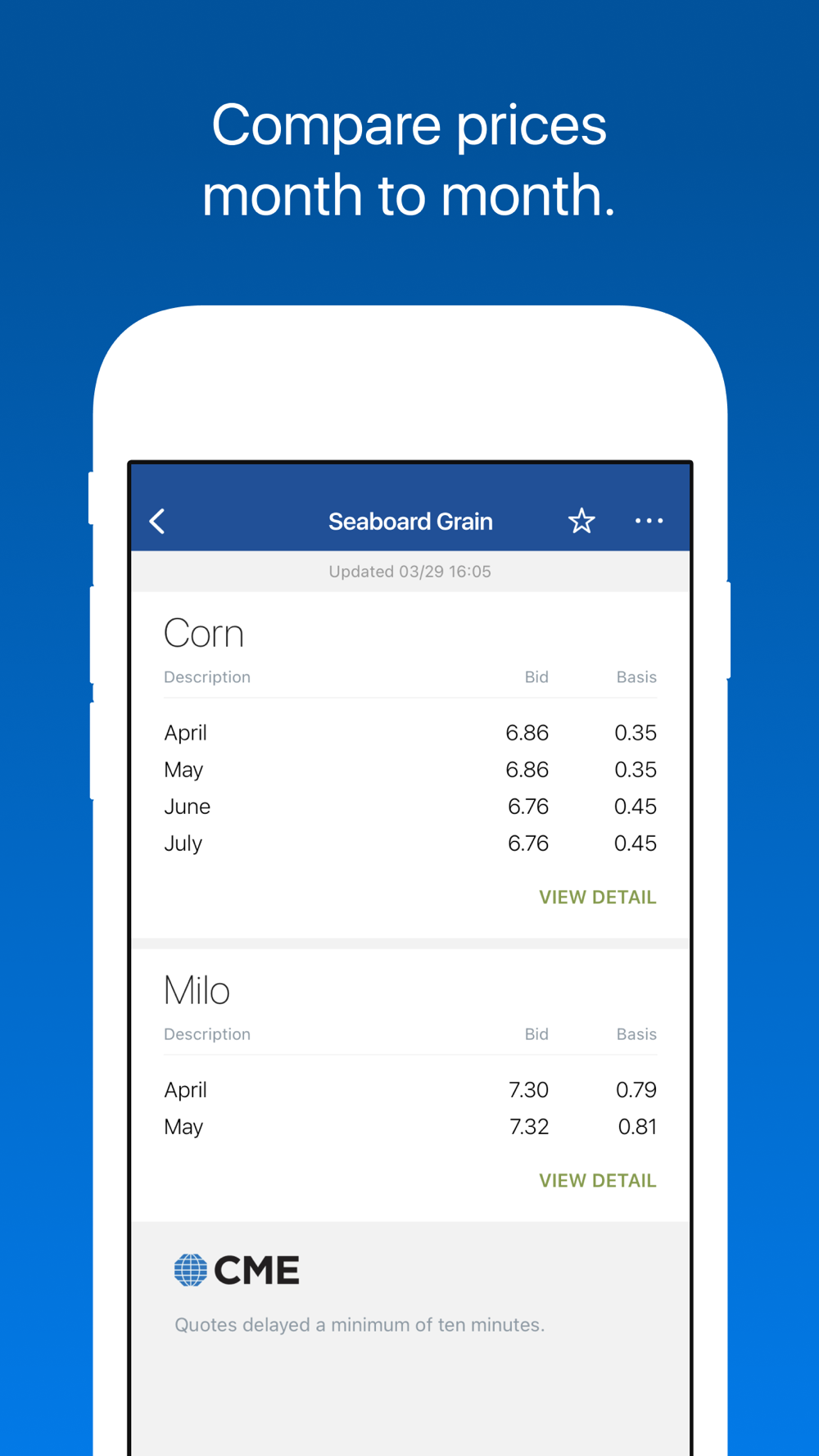 With a robust toolset that's constantly evolving to meet the demands of the modern grower, your Seaboard Grain app is built with powerful features to help you save time and maximize profits, including:
