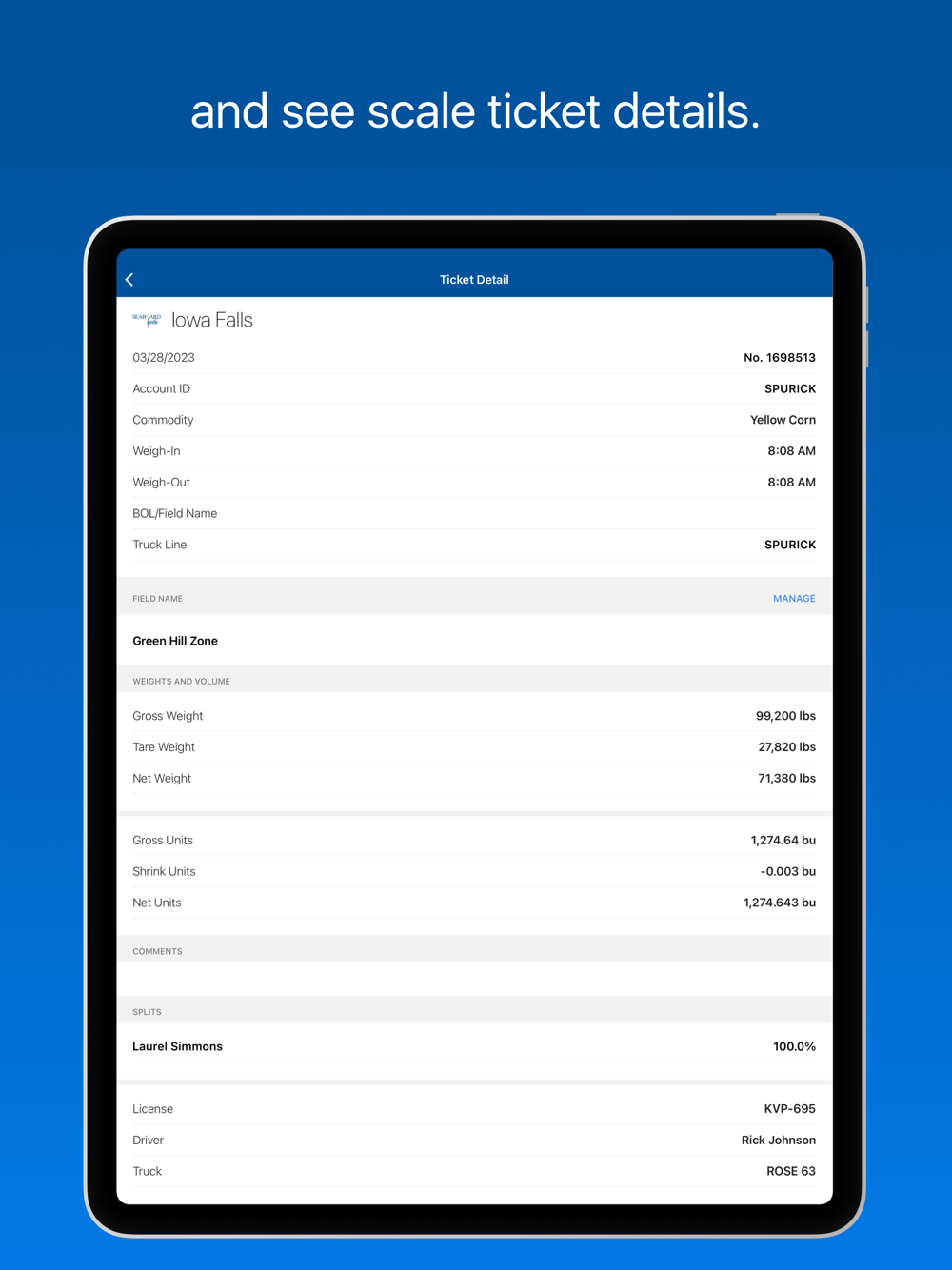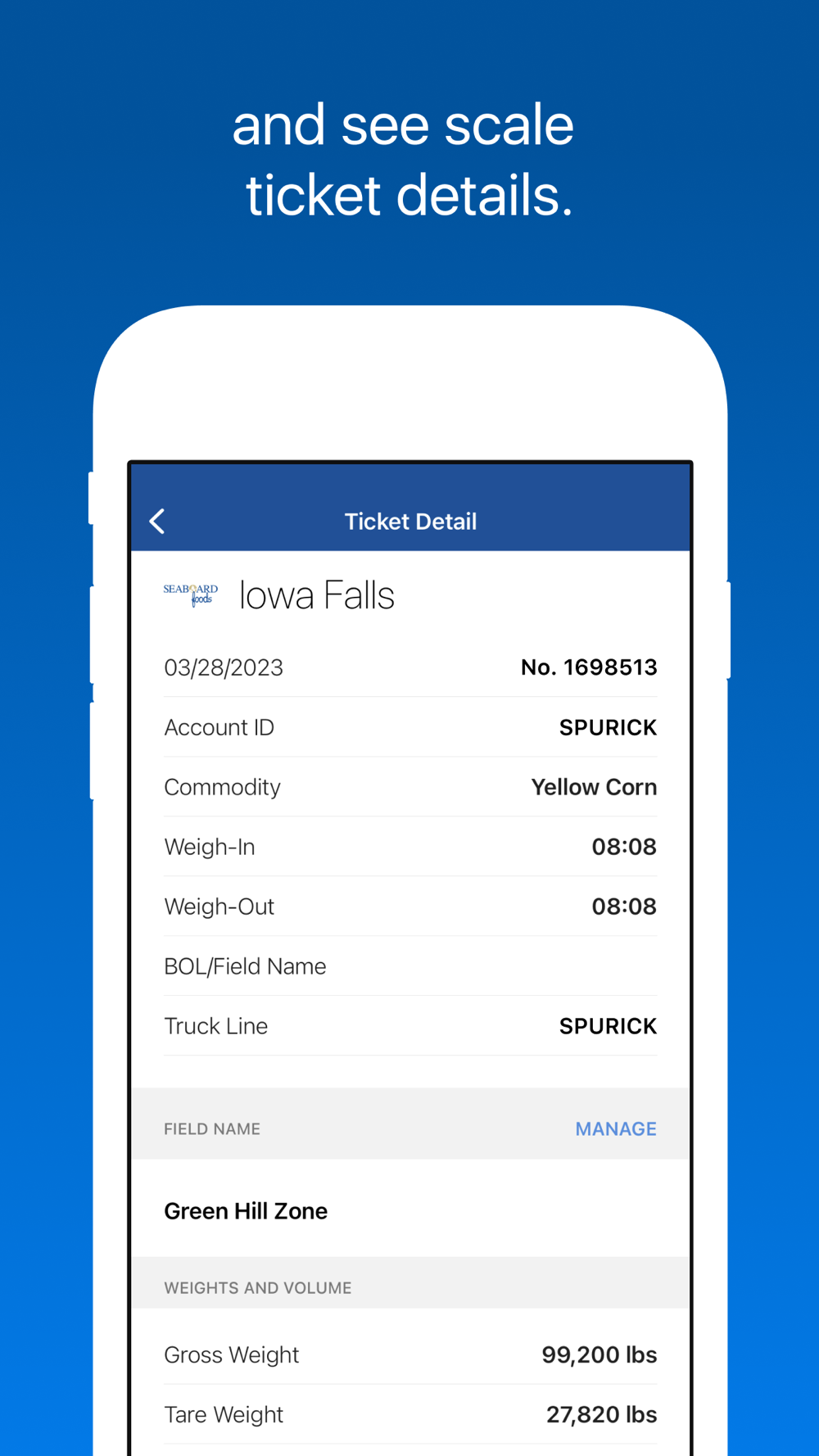 The Seaboard Grain app is an essential mobile solution that connects your operation to your grain facility, providing real-time, actionable information to help you manage and grow your business.