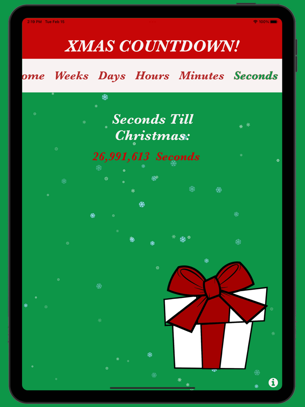 Is today Christmas? Is it tomorrow? is it in 9,198,314 seconds? Well with Xmas Countdown! you'll be able to find out at a moments notice!