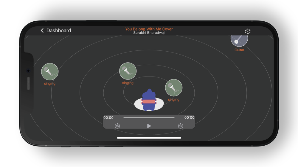 The Vedike Studio Mode lets creators add tracks from anywhere (on the device, iCloud). Once the tracks are added, users can move the instrument icon around the listener icon on the screen, and the sound moves exactly the way you see the instrument icon on the screen. If you move the drums away from the listener icon, you can hear the sound moving away from you and if you move it right, you can hear the sound coming from near your right ear and so on. Creators can use this mode to create the exact arrangement that they want for a song in minutes and in a visual way, without having to fiddle with pan controls etc. Long press on the track icon reveals more options like muting a track, deleting the track etc. The resulting output is a song with sound that is fully spatial in nature.