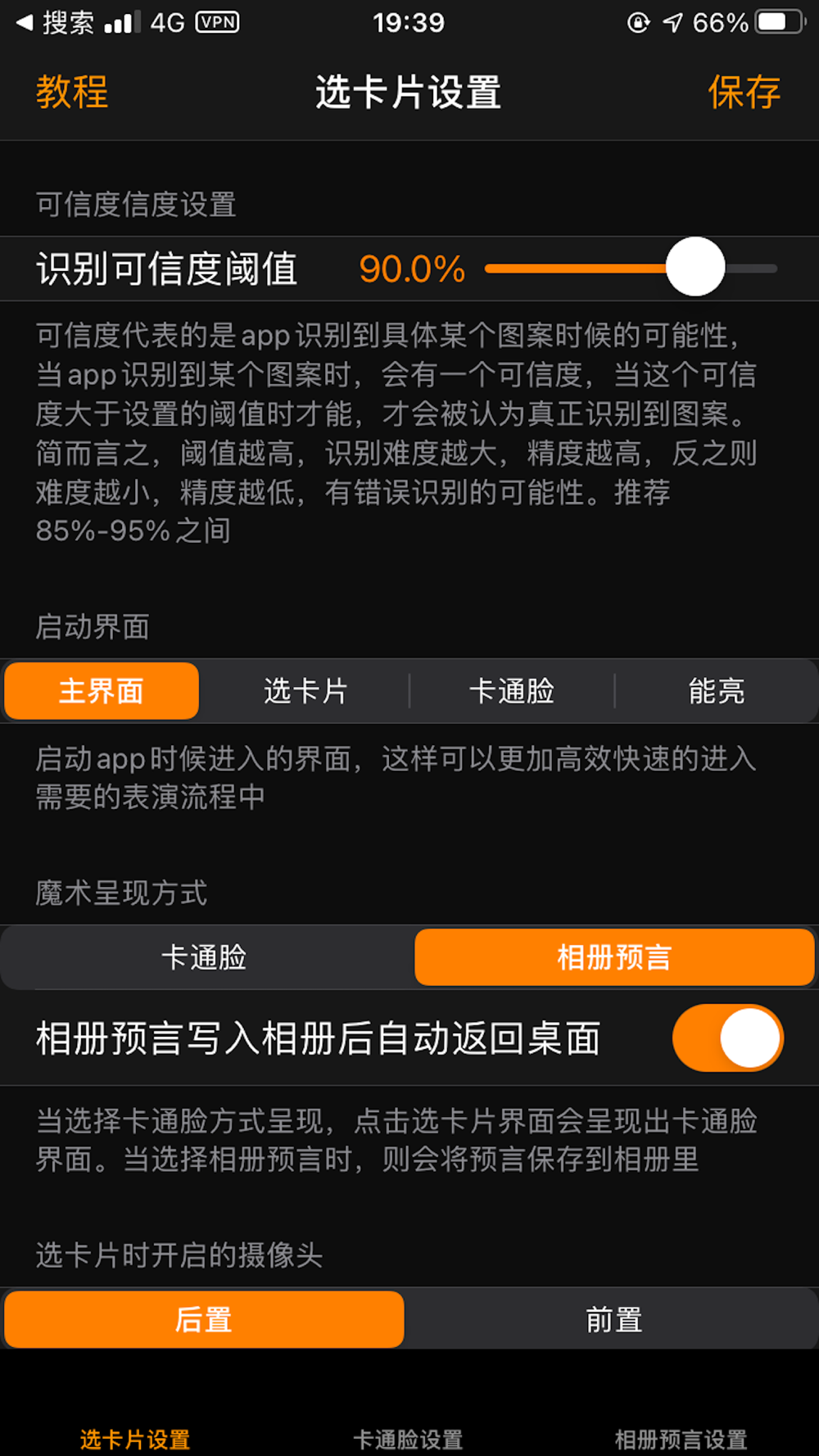 效果1(卡通脸找牌):观众选择其中一张ESP卡,并且记住图案。表演者点开app,屏幕上有个卡通脸,让观众拿着这5张卡片,打乱后一张张从卡通脸上方经过,卡通脸露出难过的表情,代表这个并不是观众想的图案。重复这一操作,在其中一张经过的时候,卡通脸露出了喜悦的笑容,而这正是观众想的那个图案。