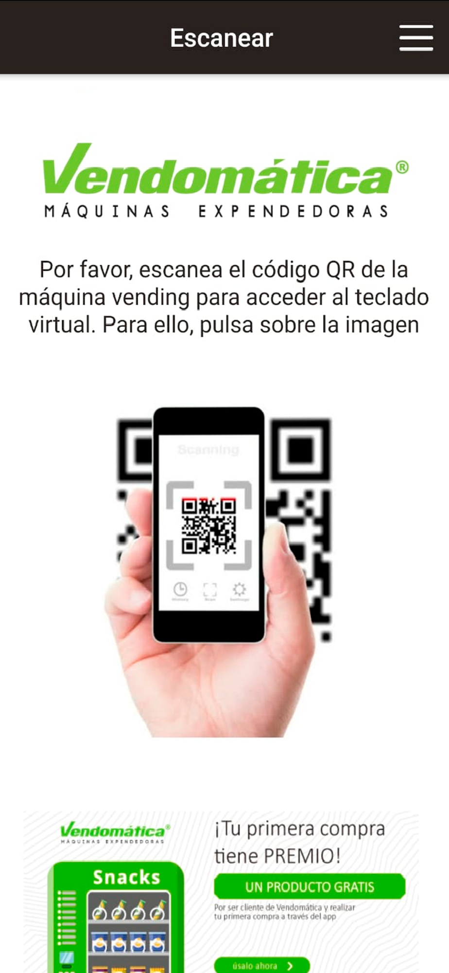 Escanea el código QR de la máquina, selecciona tus productos y paga desde tu celular.