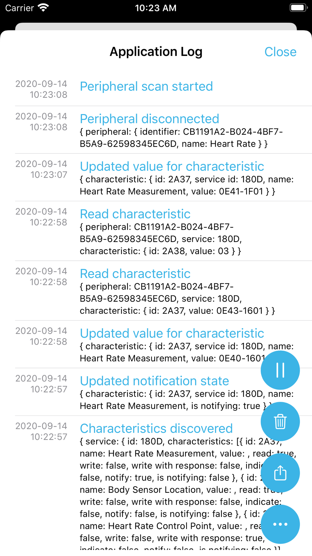 - Perform Read, write and notification interactions with peripherals