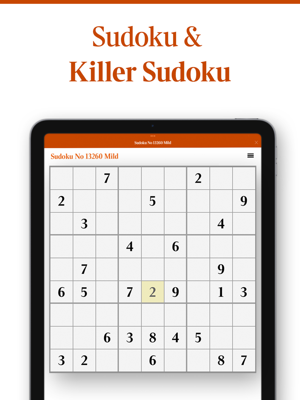 Sudoku, Killer Sudoku, Futoshiki, Kakuro, KenKen, Lexica, Polygon, Quintagram, Set Square, Suko, Codeword, Brain Trainer and Cell Blocks