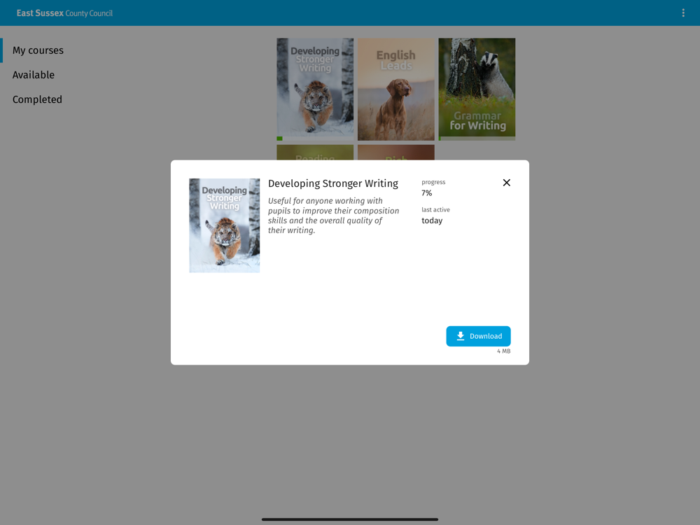 You should only download this app if you have login information from your school, or from East Sussex County Council directly. Once logged in, you will be able to download your publications and start learning straight away on your device. Complete short courses and use the built-in tracking to see how you have progressed.