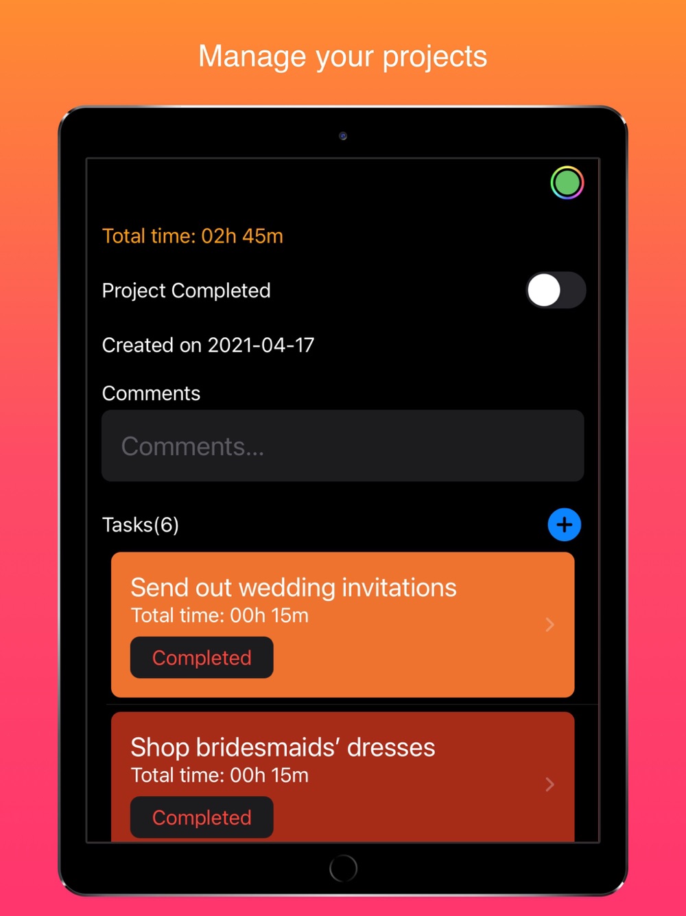 Timesheet++ makes projects and tasks time logging very easy. No need for a big and heavy application to log your time. With Timesheet++ you simply define a project, add tasks and you are ready to go!