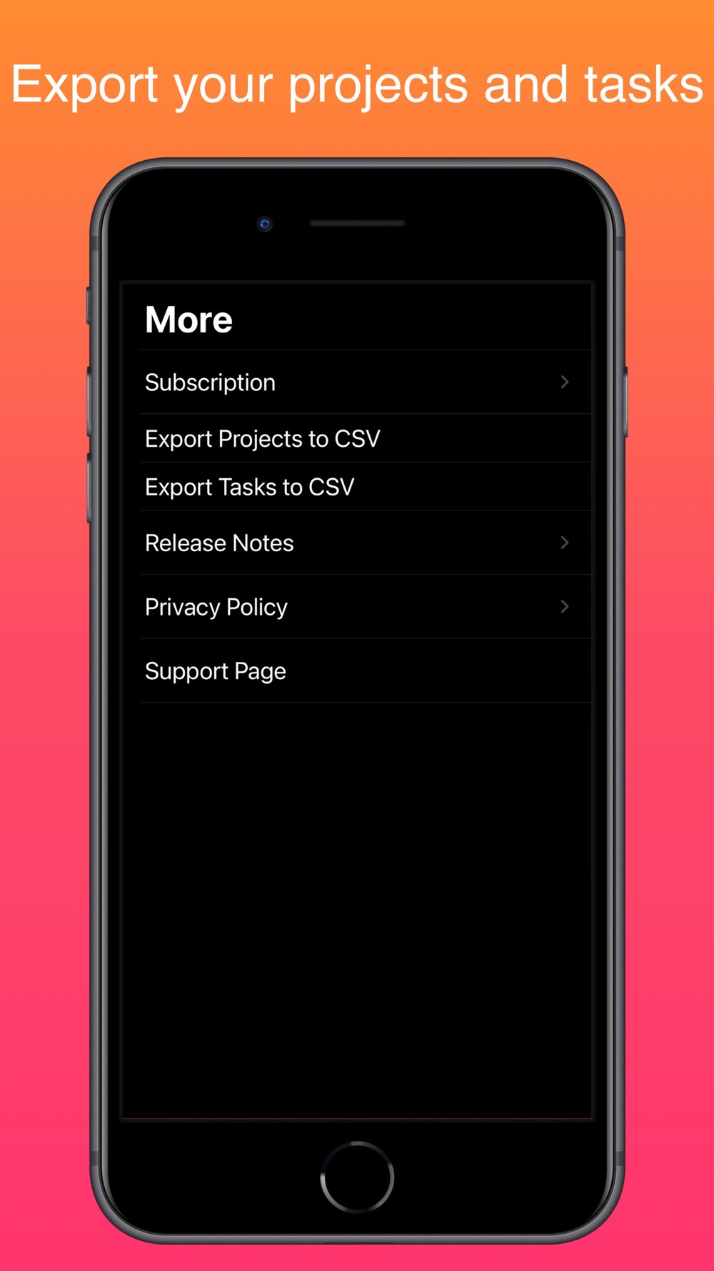 -Export your projects and tasks to CSV files so you can manipulate them as you want with your favorite spreadsheet application.
