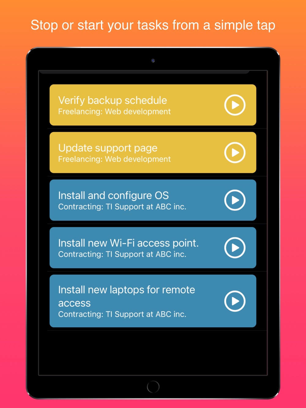 -Simply press start or stop and Timeshheet++ will do all the rest for you.