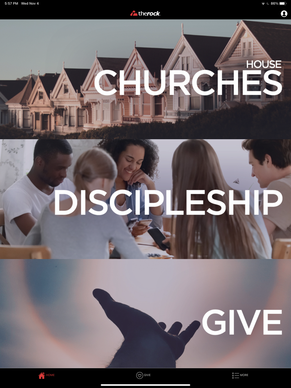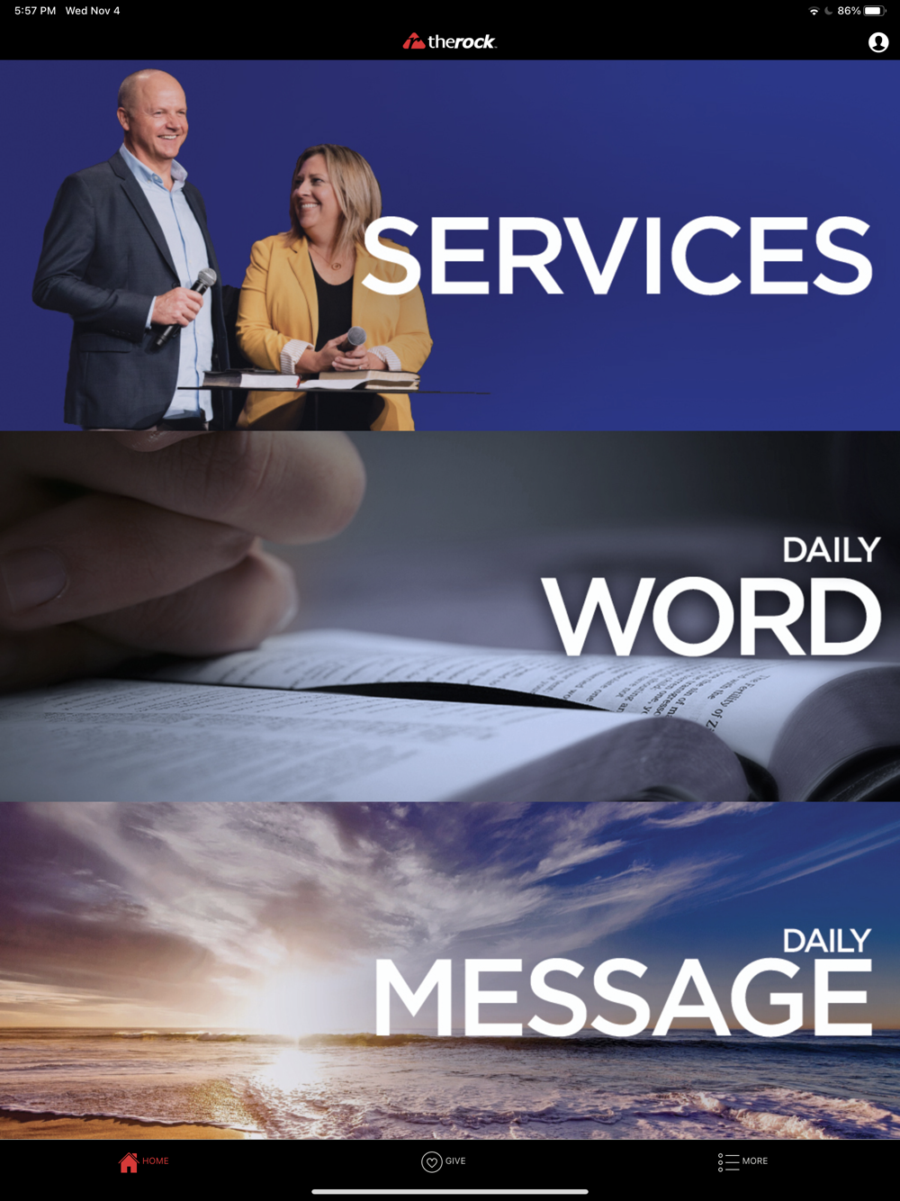 Connect and engage with the The Rock app! You will be able to view upcoming events, give, read the bible, and more!
