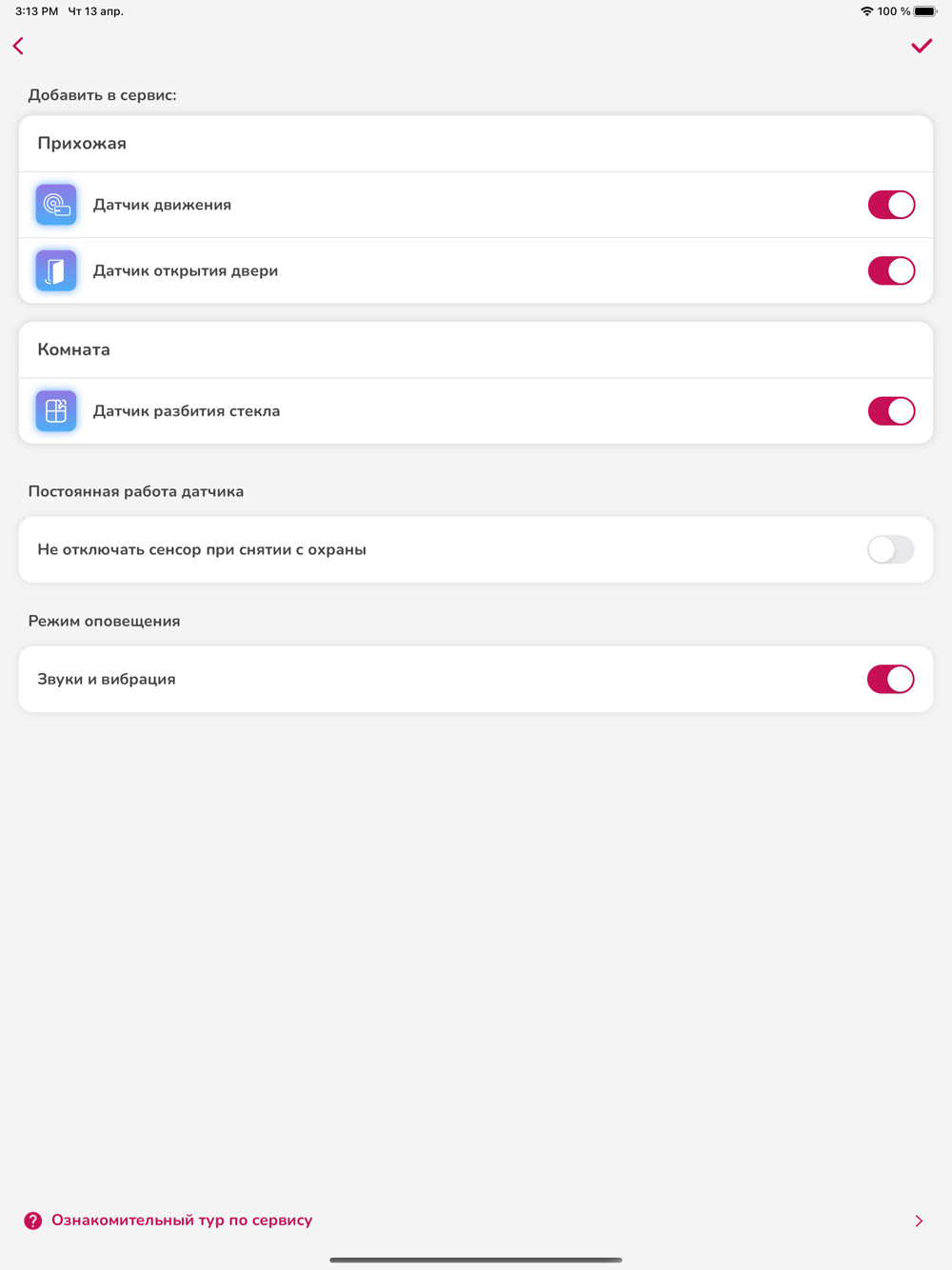 - Следите за состоянием датчиков в удобном интерфейсе;