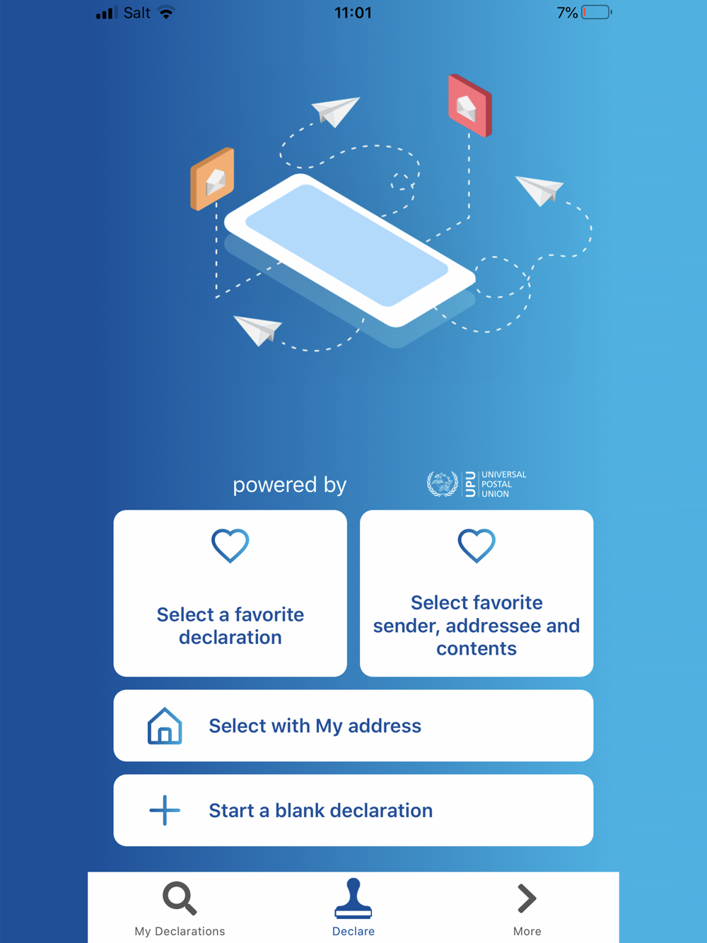 Powered by the Universal Postal Union. Choose your sender country from the list after installing it.