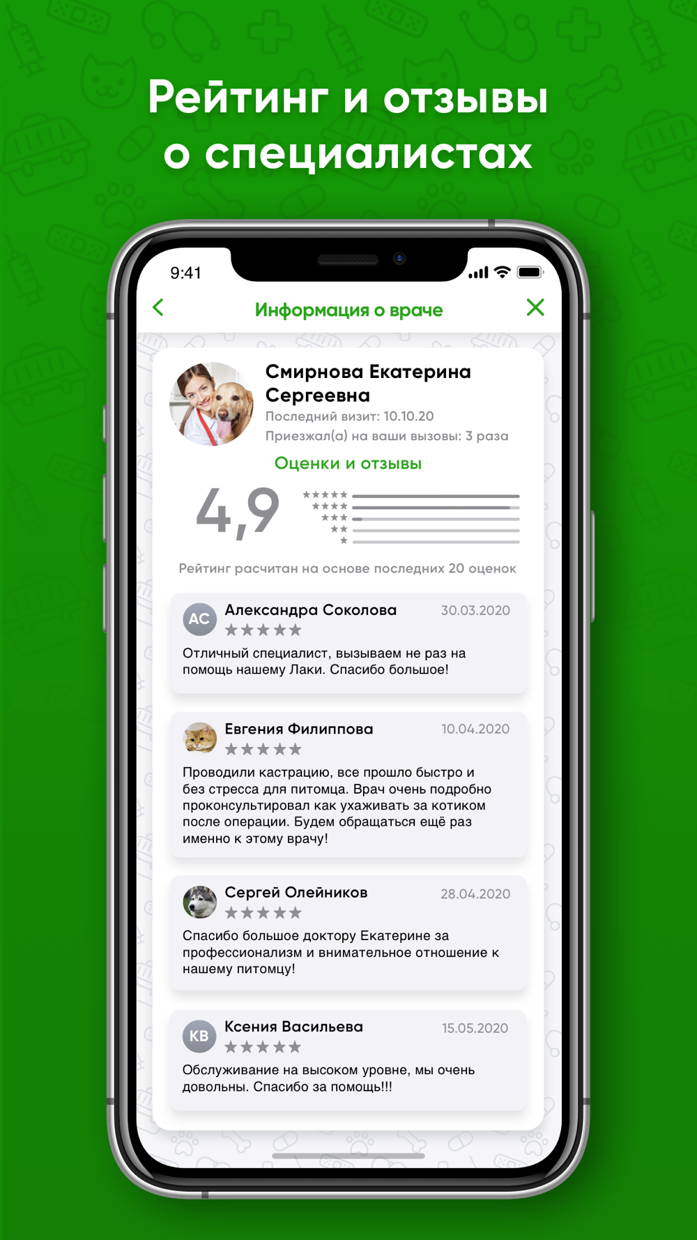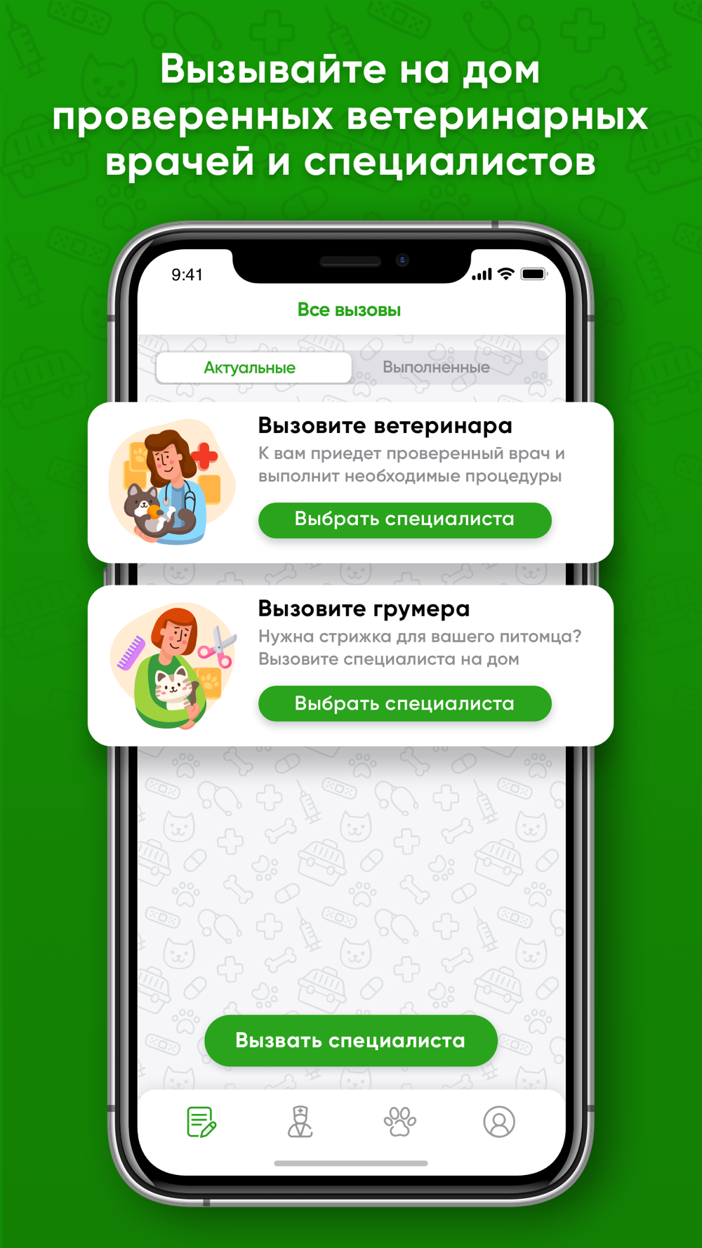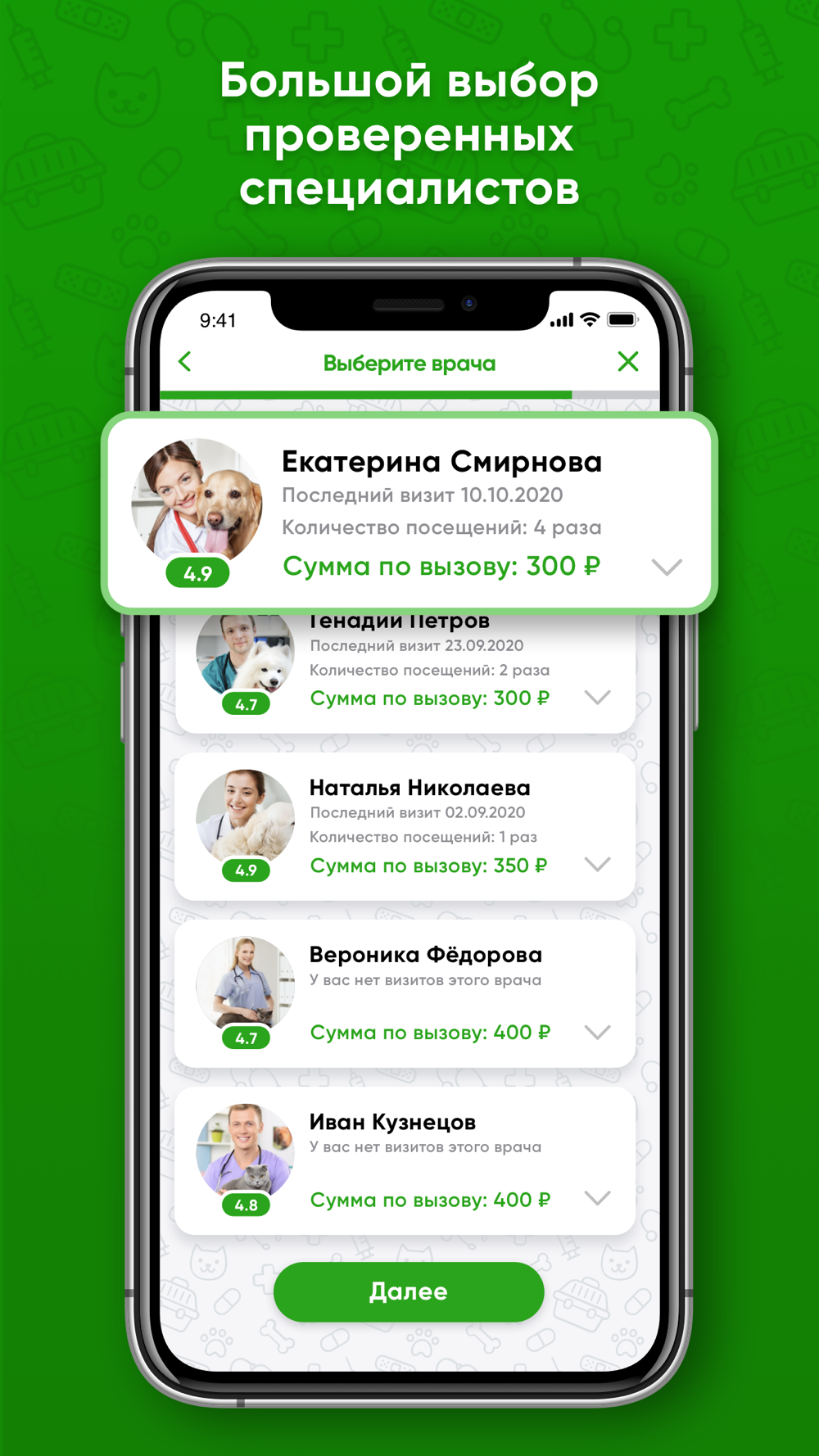 В приложении действуют комплексные программы, мы постоянно вводим новые услуги, например, приезд и первичный осмотр врача на дому по от 380 рублей - ведь ветеринарная медицина должна быть доступной!