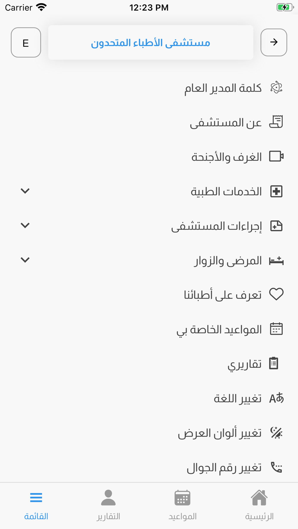 كذلك يوفر التطبيق معلومات مفصلة حول خدمات المستشفى والغرف والأقسام الطبية وحقوق المرضى وإجراءات المستشفى الداخلية ذات العلاقة.