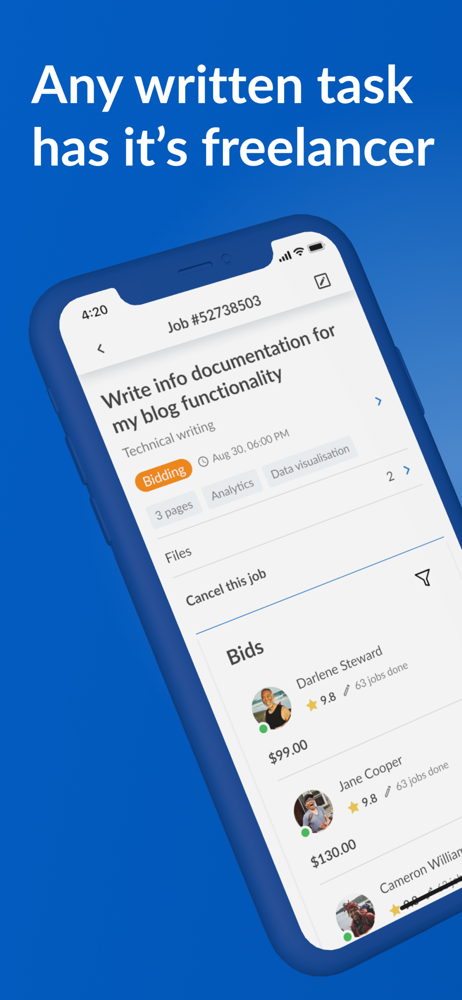 MyWriter is a platform that helps match you with an expert in a specific field. Are you stuck with a blog post, technical text, paper or a cover letter? MyWriter offers the way to deal with all your written tasks. Find your new favourite freelancer from the comfort of your phone!