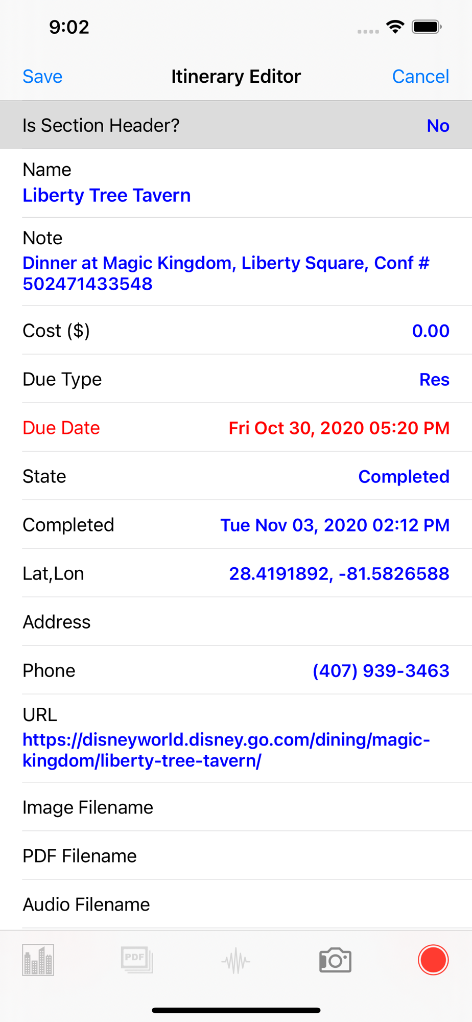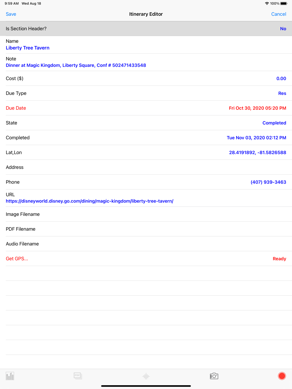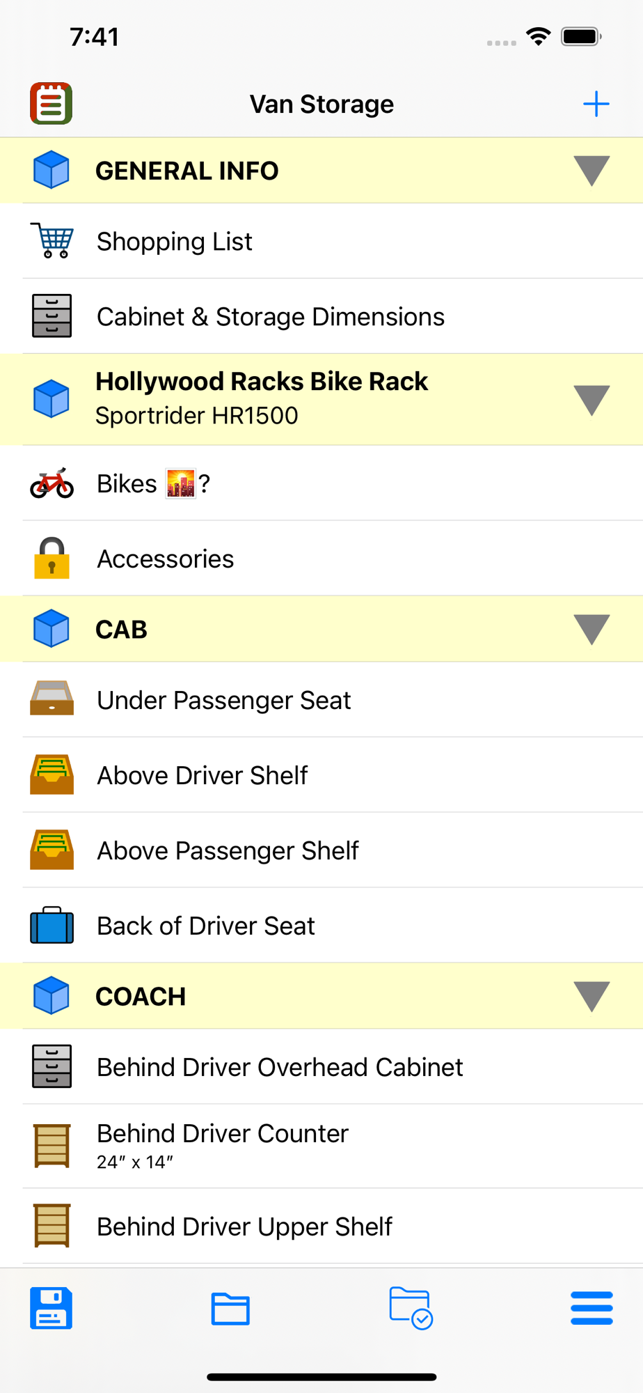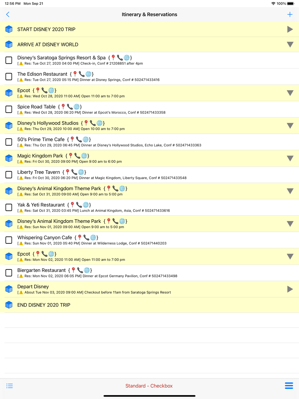 - Custom lists include: business listings, contacts, diary, itinerary, mileage, pack weight, shopping, expenditures, account, catalog, FAQ and data
