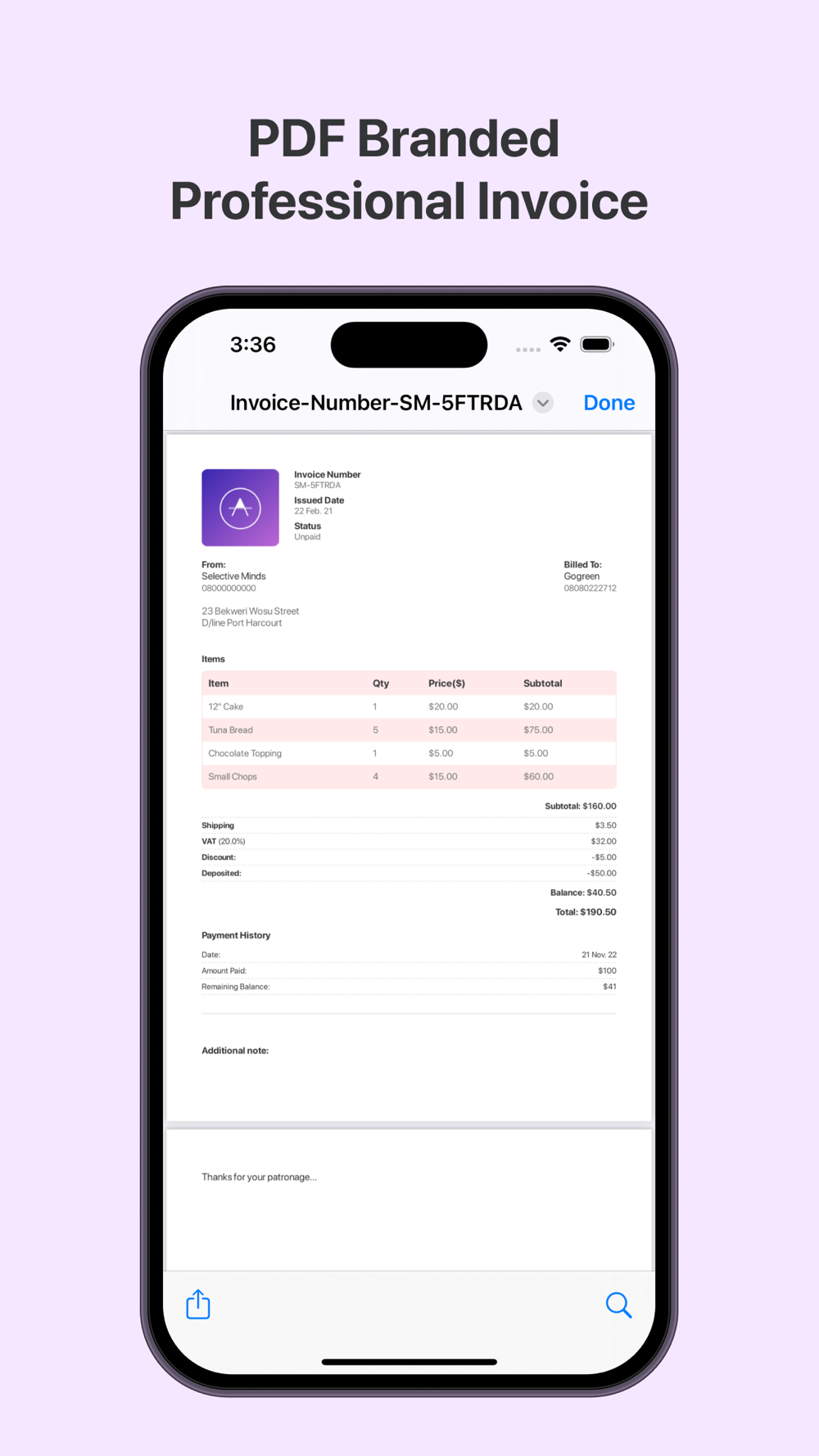 - Share invoices as links through popular messaging platforms like WhatsApp, Instagram, or Twitter DMs