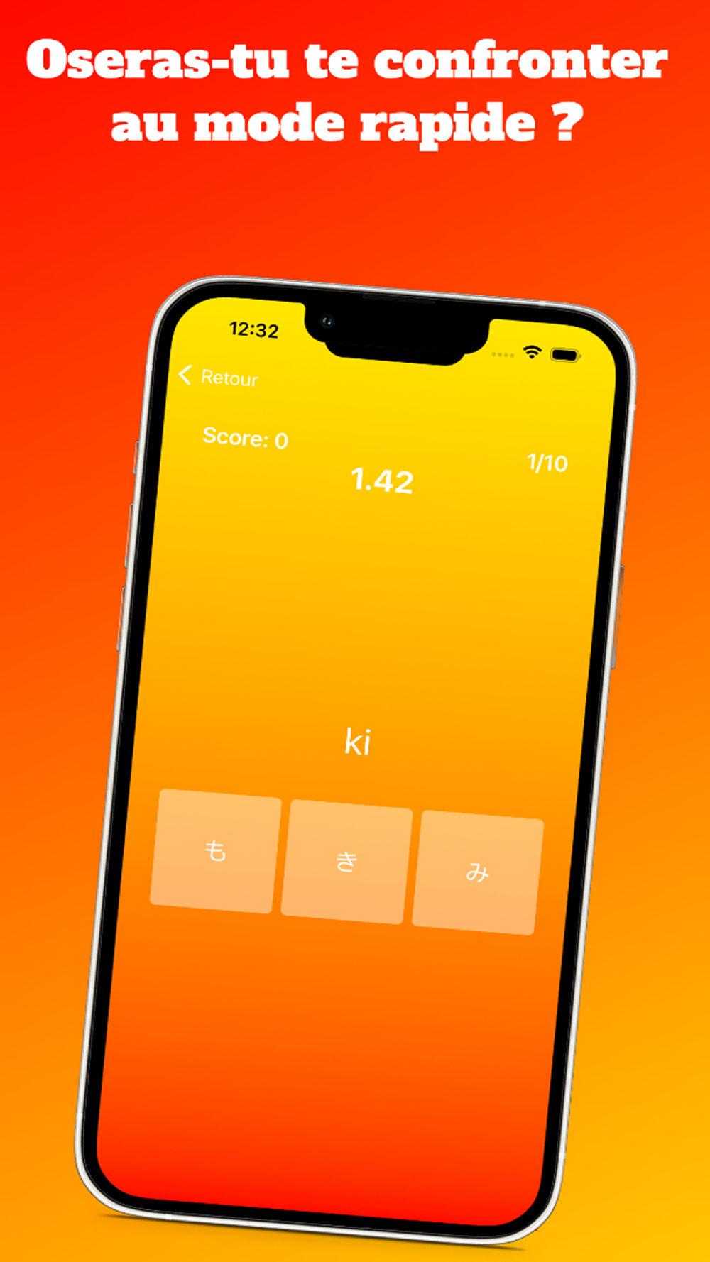 - Le mode Rapide, pour les plus téméraires d'entre vous, sera parfait pour tester votre rapidité de réponse ! Si vous avez tout juste dans le temps imparti, cela voudra donc dire que vous maîtrisez bel et bien les kanas !