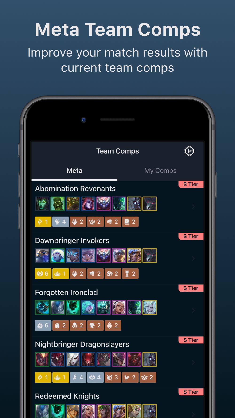 • Create & manage your team comps from within the app.