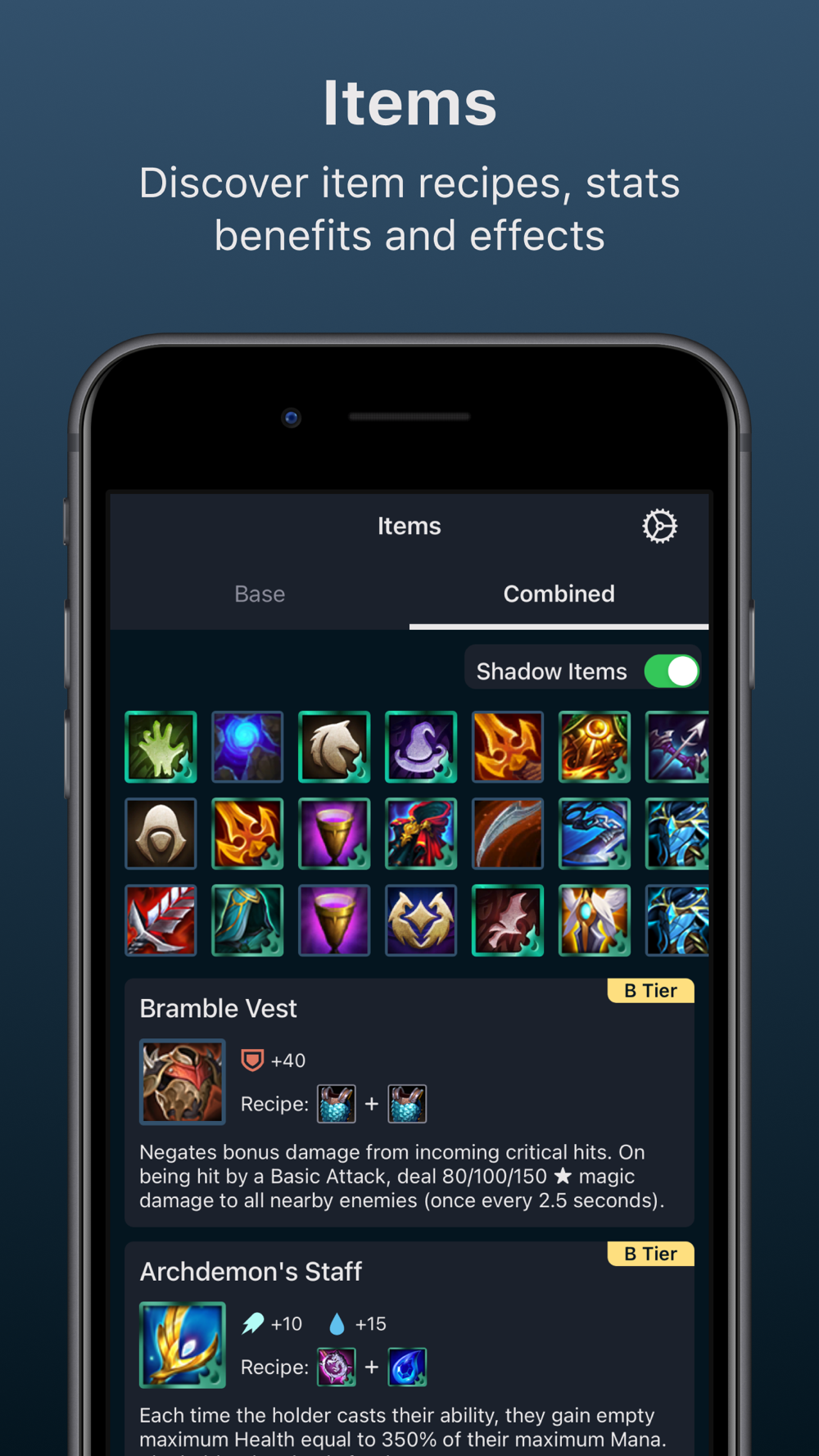• Stay informed on which items are strong via their tier rating.