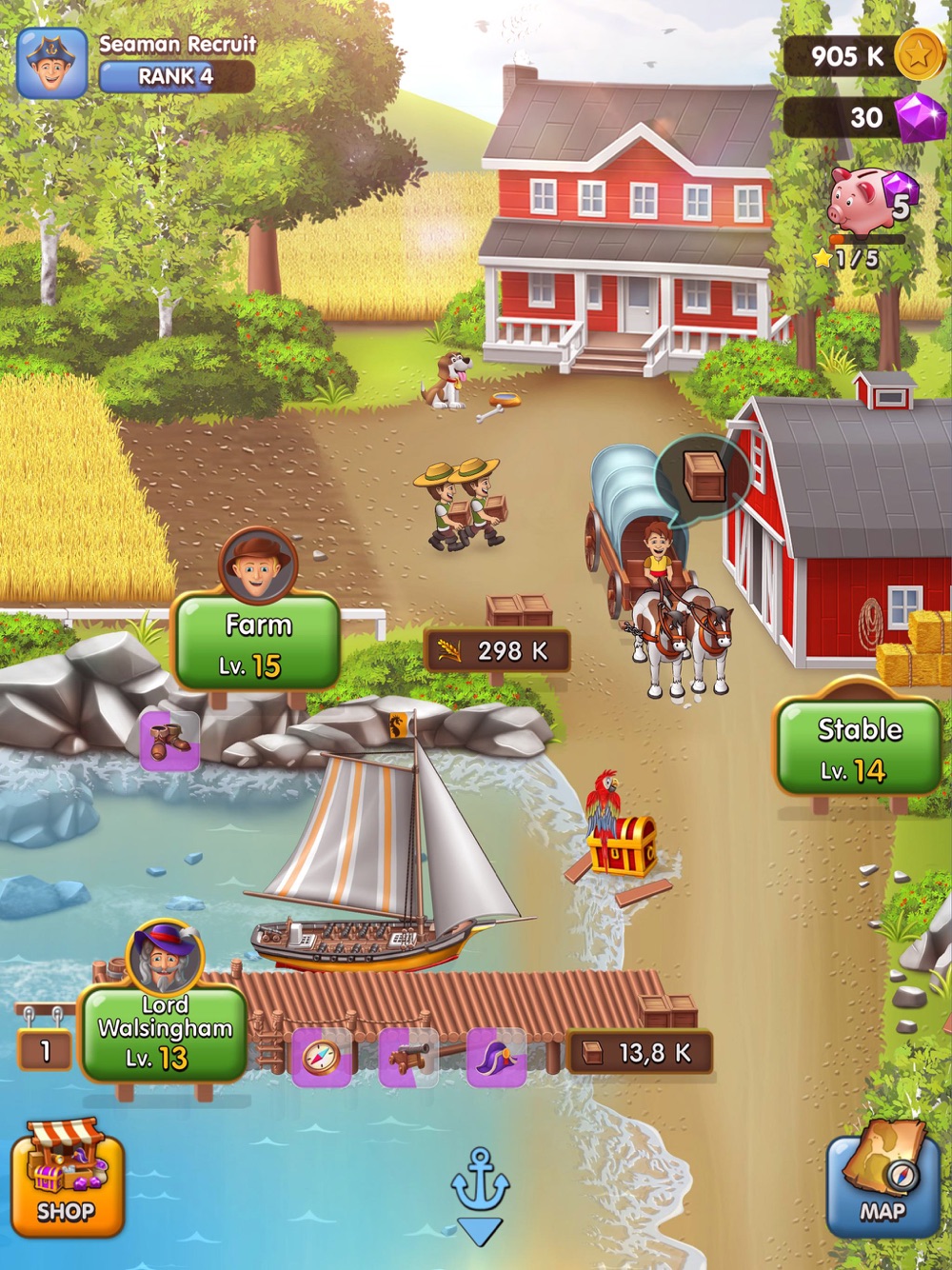 Grow your empire, harvest trading goods, send ships on expeditions and grab treasure chests full of gold or useful items.