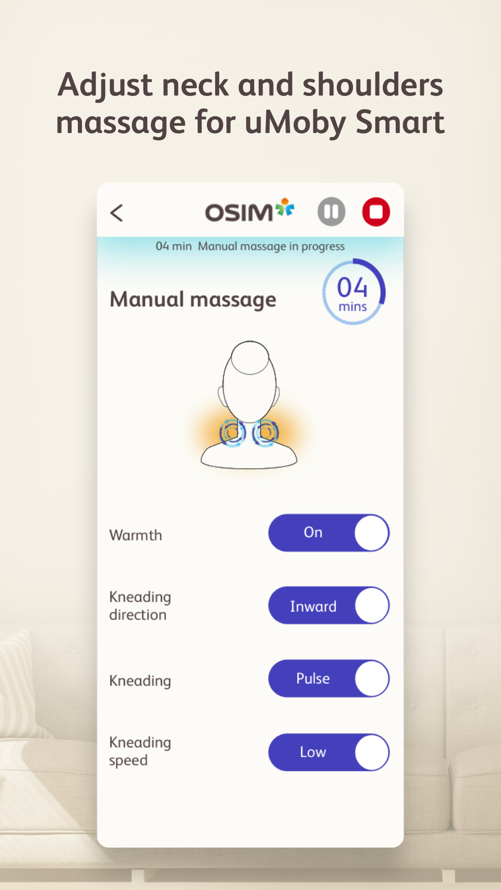 uMoby Smart massage adjustment: