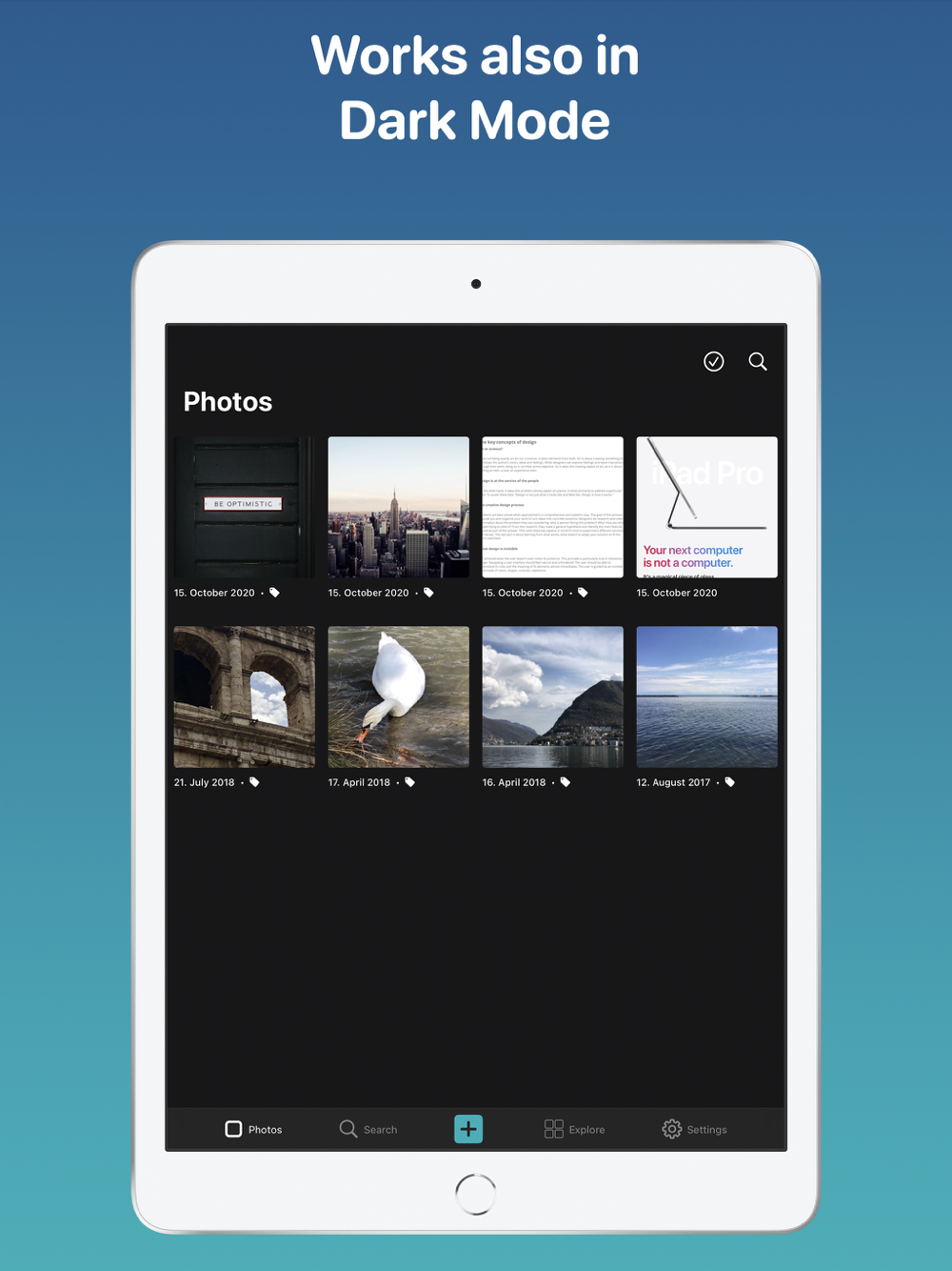 - Tag your content: organize your photos and files into categories using tags, find them immediately thanks to the "explore" feature or search for them using the "search" function