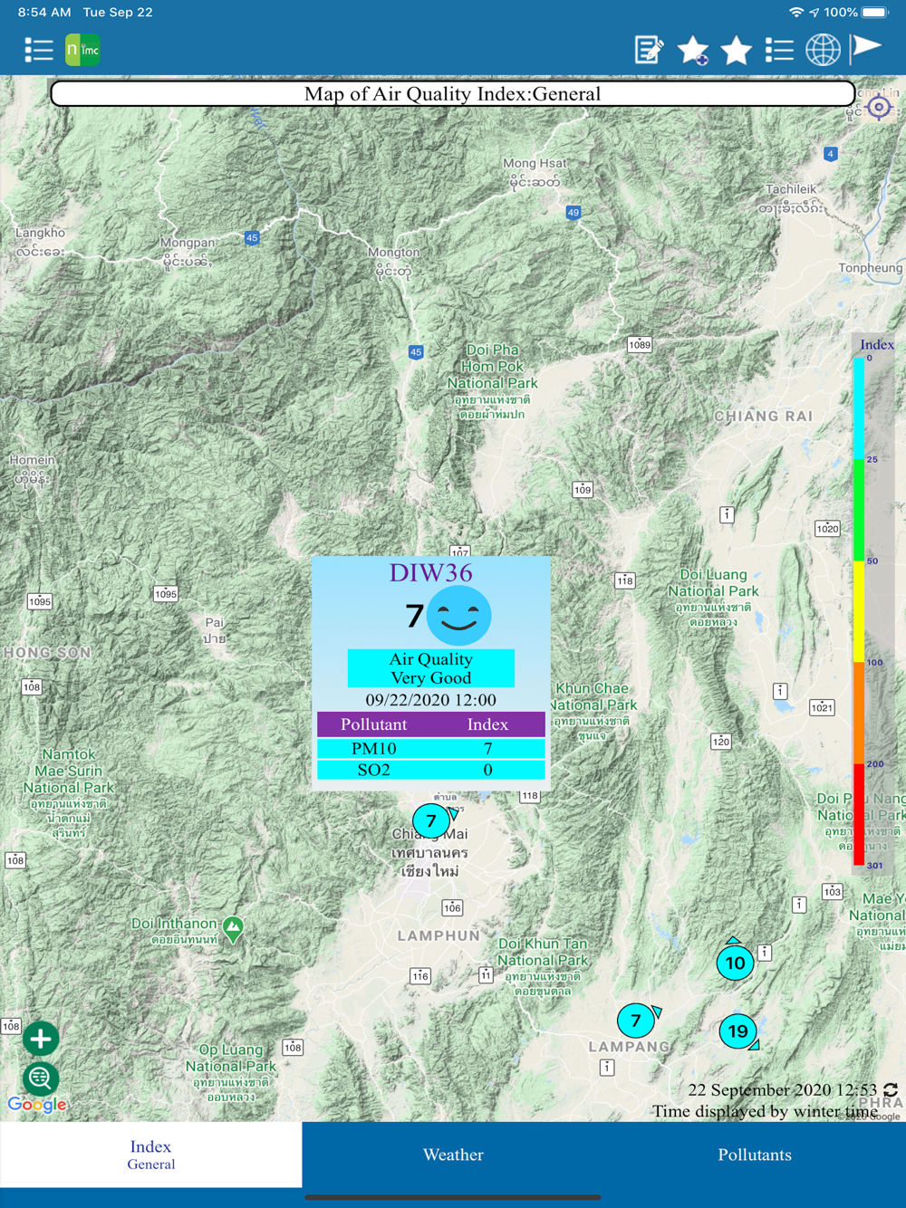 This application has been developed by Envitech Ltd as a public\nenvironmental service. \n \n The data displayed in this \n application was acquired from air \n quality monitoring stations in the Chiang Mai
