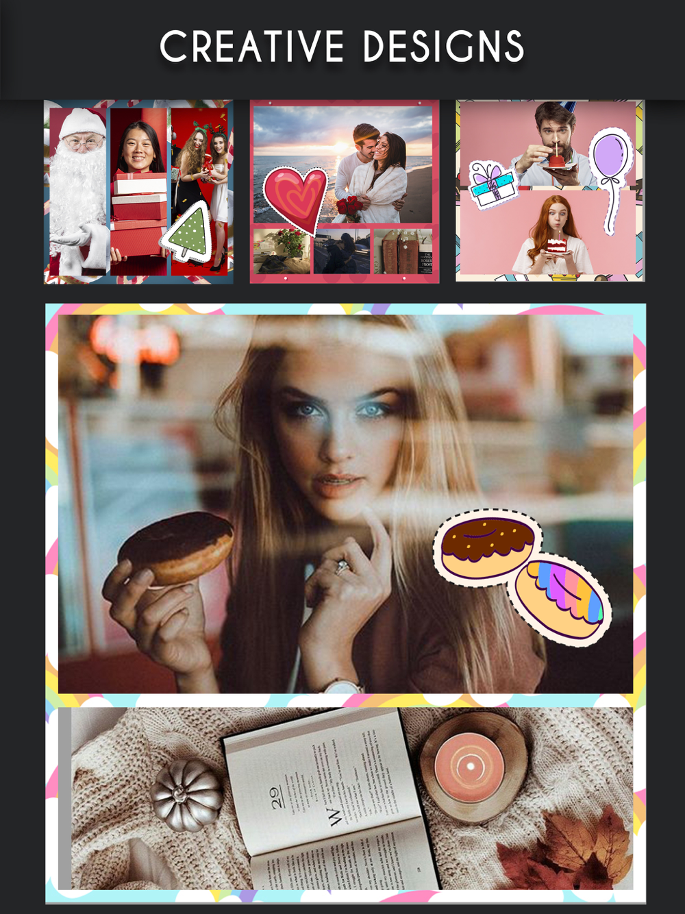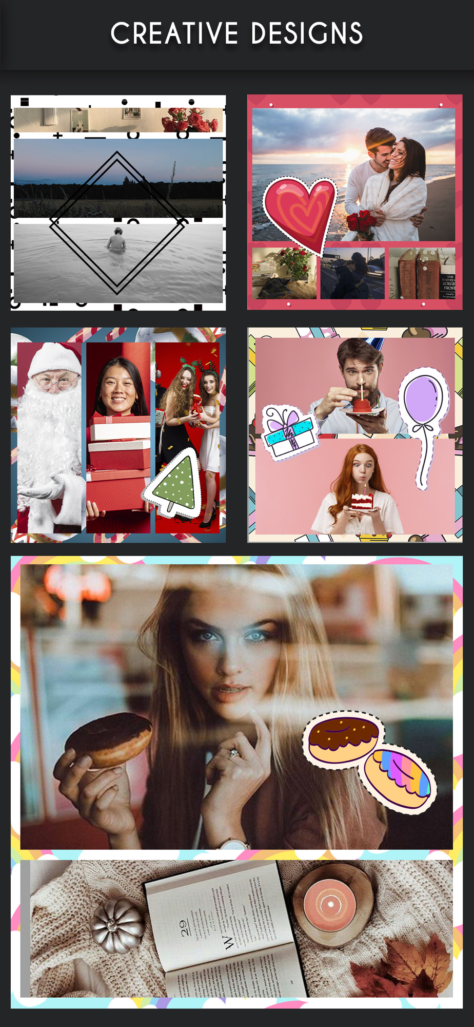 Are you looking for a photo editor to create the best collages with the coolest templates and photo grid features? Download our photo collage maker app and start to edit your images in a single photo collage grid with various layout options, shapes, frames and backgrounds!