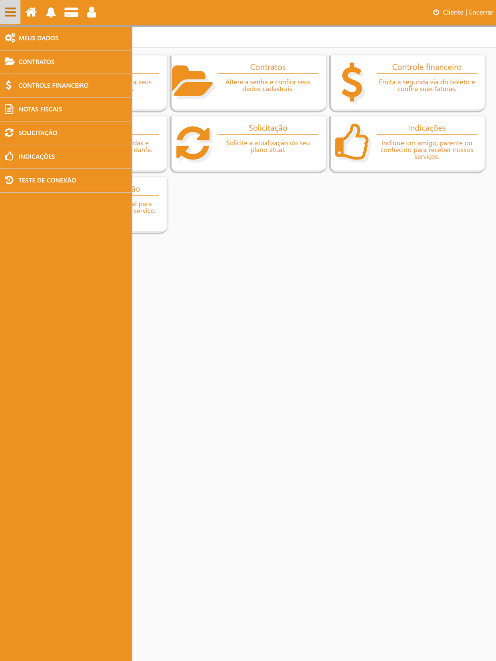 Com o aplicativo da área do cliente você poderá emitir seus boletos e recibos, receber notificações e avisos, abrir atendimentos e indicações, testar sua velocidade de conexão e muito mais.
