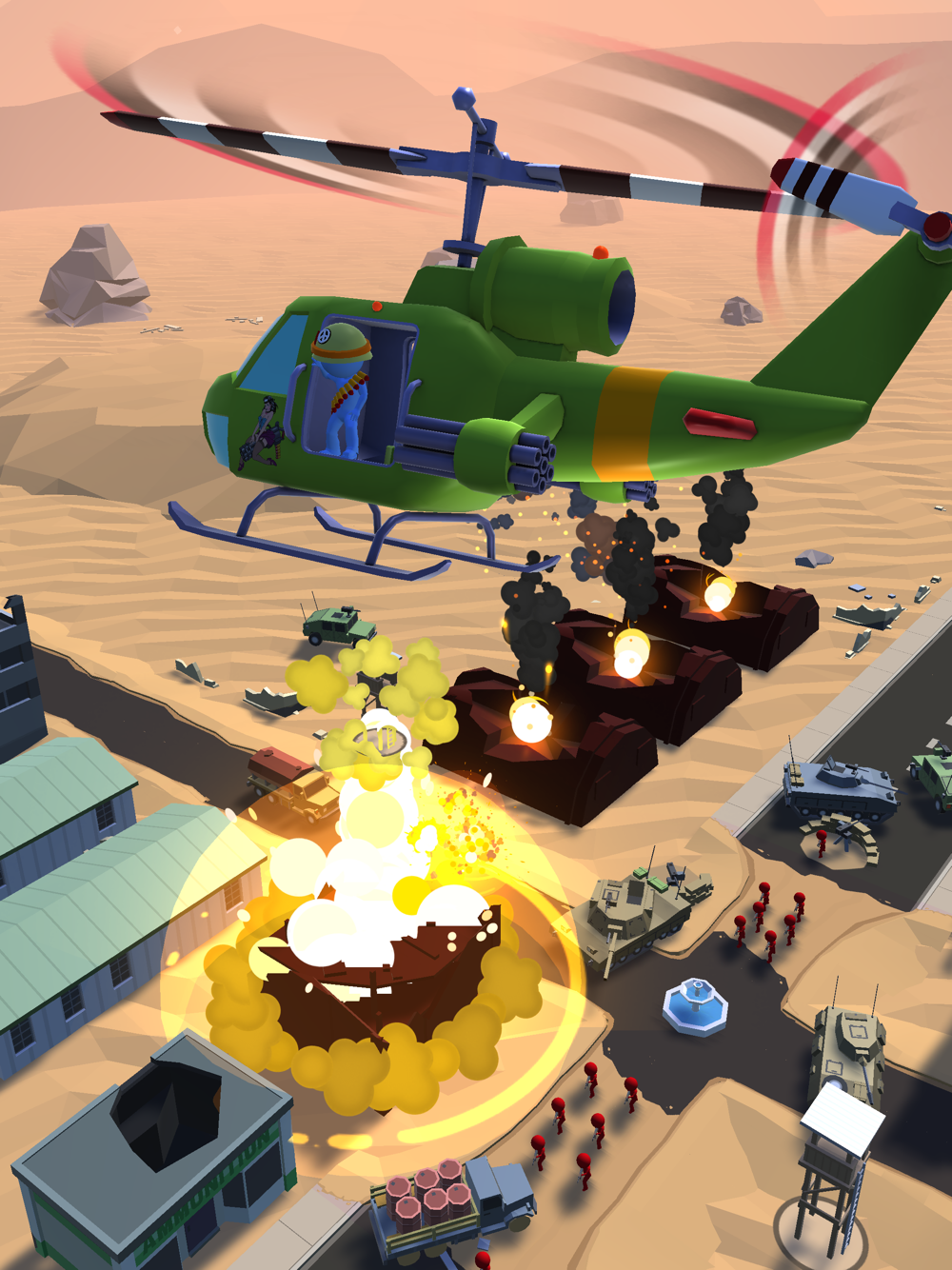 You can shoot from a fast military helicopter directly at the target! Let’s start fast and amazing carpet bombing! This is fun copter invasion!