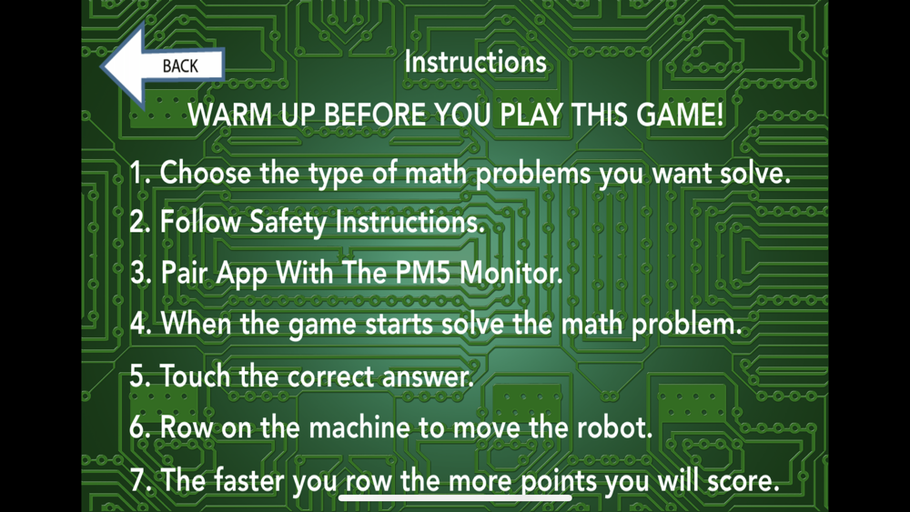 Now row on the Concept2 rowing machine The faster the rowing the faster the robot moves and the more points are scored when the robot touches the correct answer.
