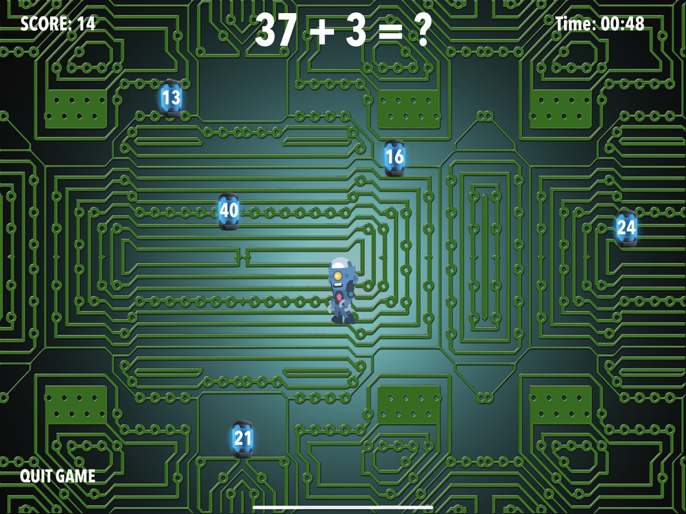 Next, they can choose the type of math problems for a particular game. Erg Math includes four levels of difficulty and provides random questions for all of the math operations - addition, subtraction, multiplication and division. It is also possible to set the time limit for the game as well as turn on or off the sound effects and music.
