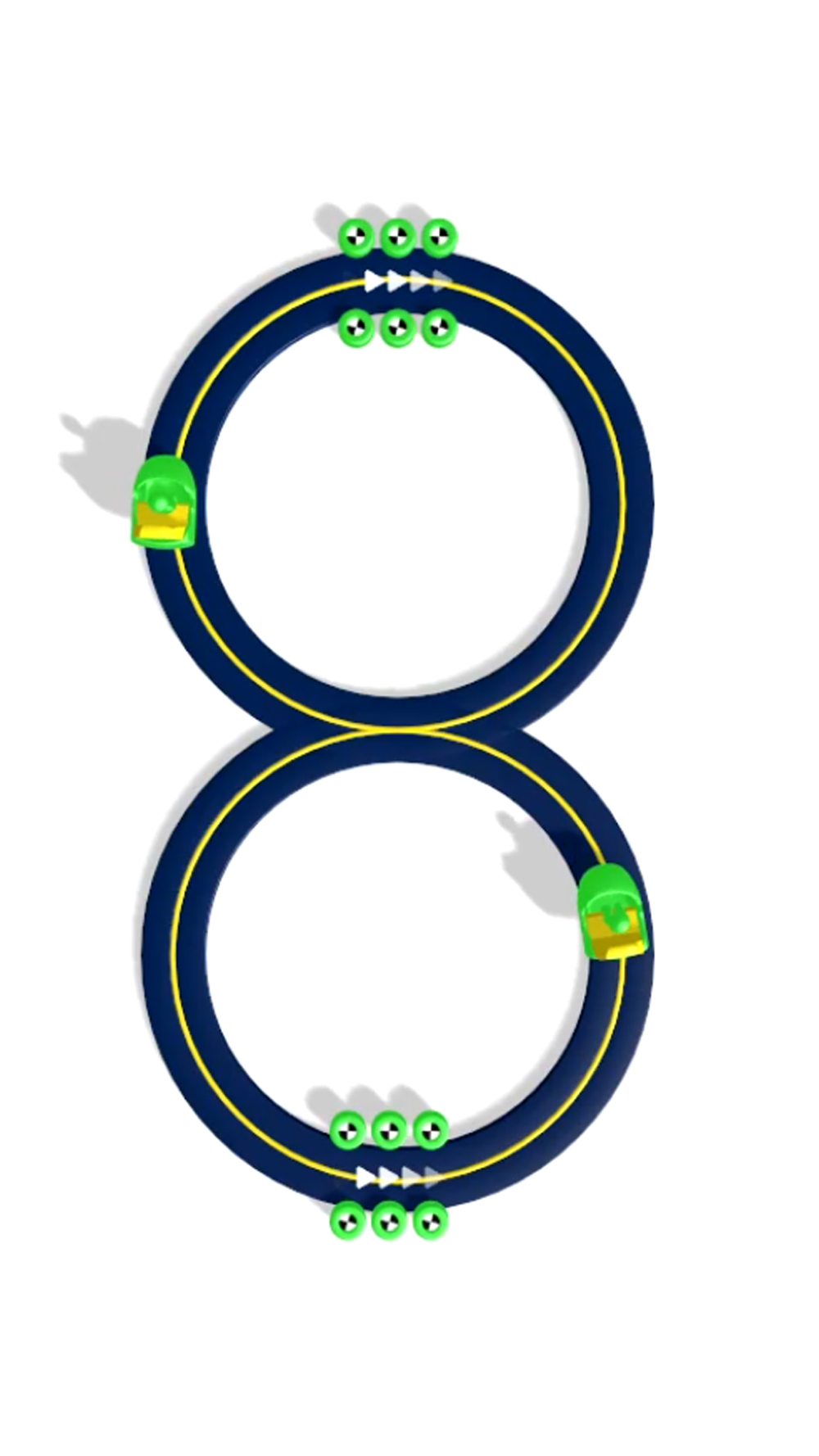 Trains tracks are for the roller coasters, and don't let them hit one another while rotating.
