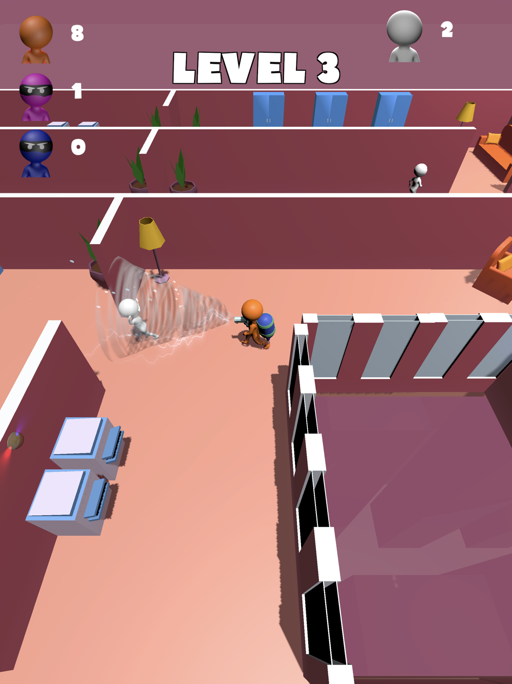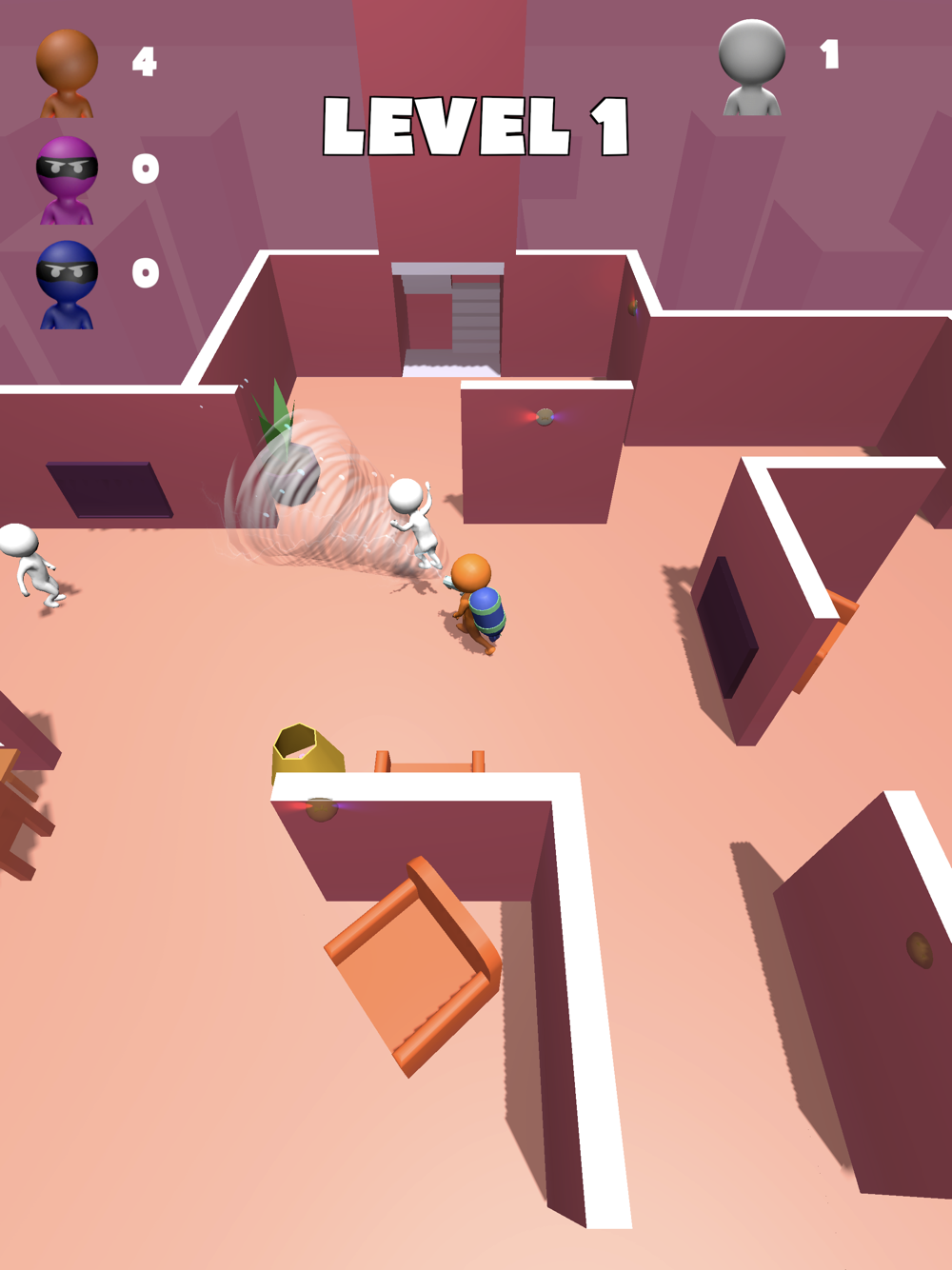 You have to vacuum more people than your rivals. When you do that, you should go to stairs. Why you still waiting, just play it!