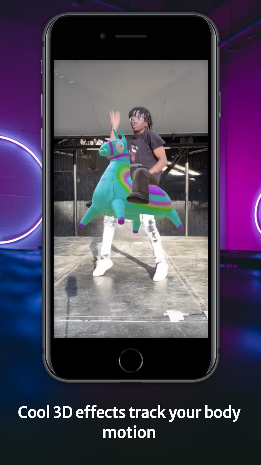 Augment video from your live camera, or upload from your camera roll. Experience an amazing library of 2D & 3D effects, or choose a 3D character to mimic your every unique move. Show your friends, family or the whole world your best dance moves, workout videos, or fun activity that gets your body moving!