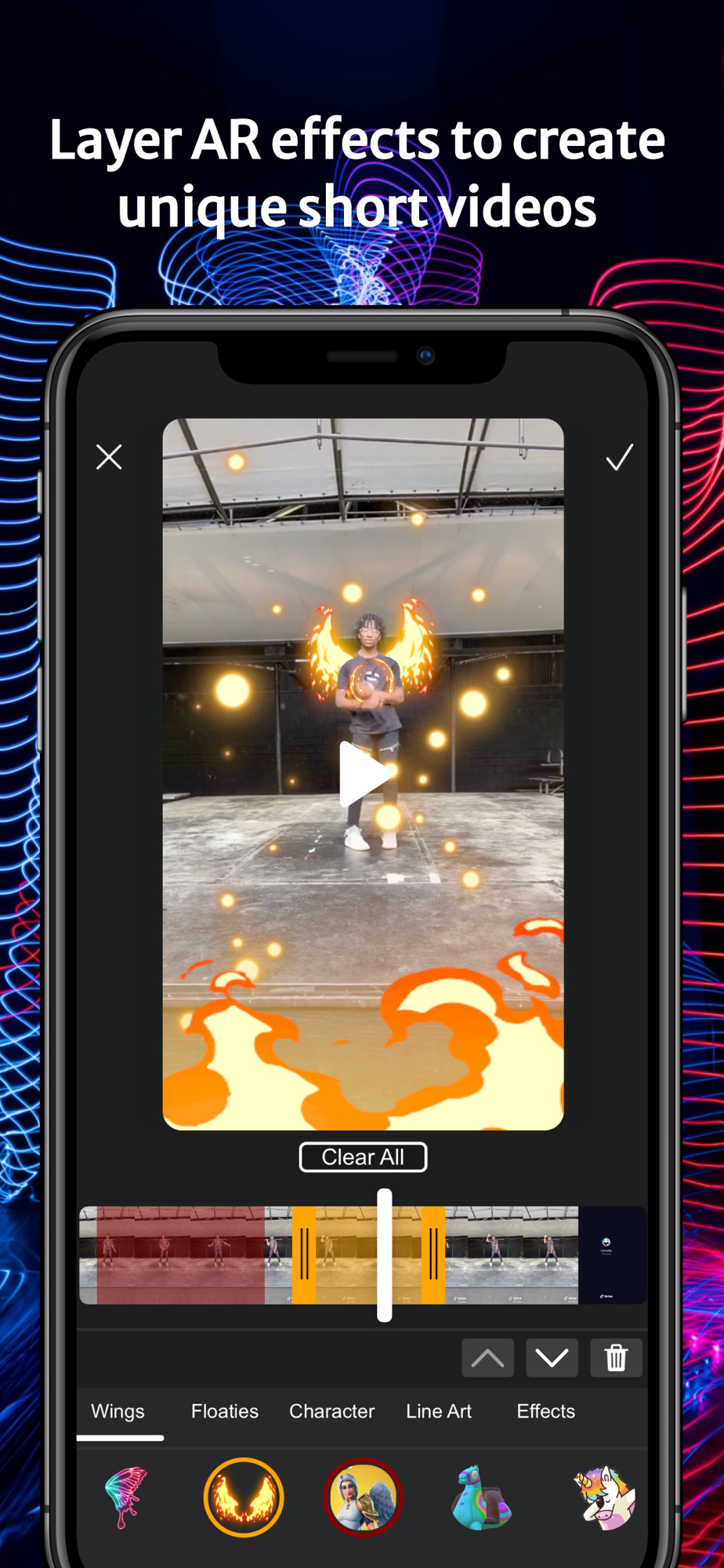 Our integrated editing tools allow you to add AR effects anywhere in your video. Easily adjust the length of the effects duration and trim your videos.