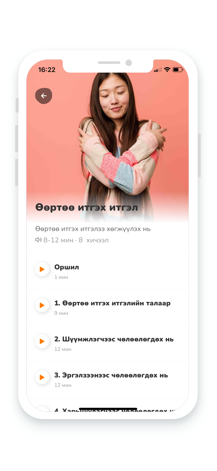 Манай хичээлүүд нь сэтгэлзүй болон бясалгалын гүн ухаанд суурилсан бөгөөд хичээл бүр танд энгийн бас ойлгомжтой байдлаар оюун санаагаа тогтворжуулах, бие сэтгэлээ тайвшруулах болон харилцаагаа сайжруулах мэдлэг болон чадваруудыг өгөх зорилготой юм. Та өөрийн сонирхсон 7-30 хоногийн хичээлүүдээс сонгон сэтгэлзүйн аялалд гарч, өдөр бүр шинэ дасгалуудыг хийн өөрийгөө хөгжүүлээрэй.