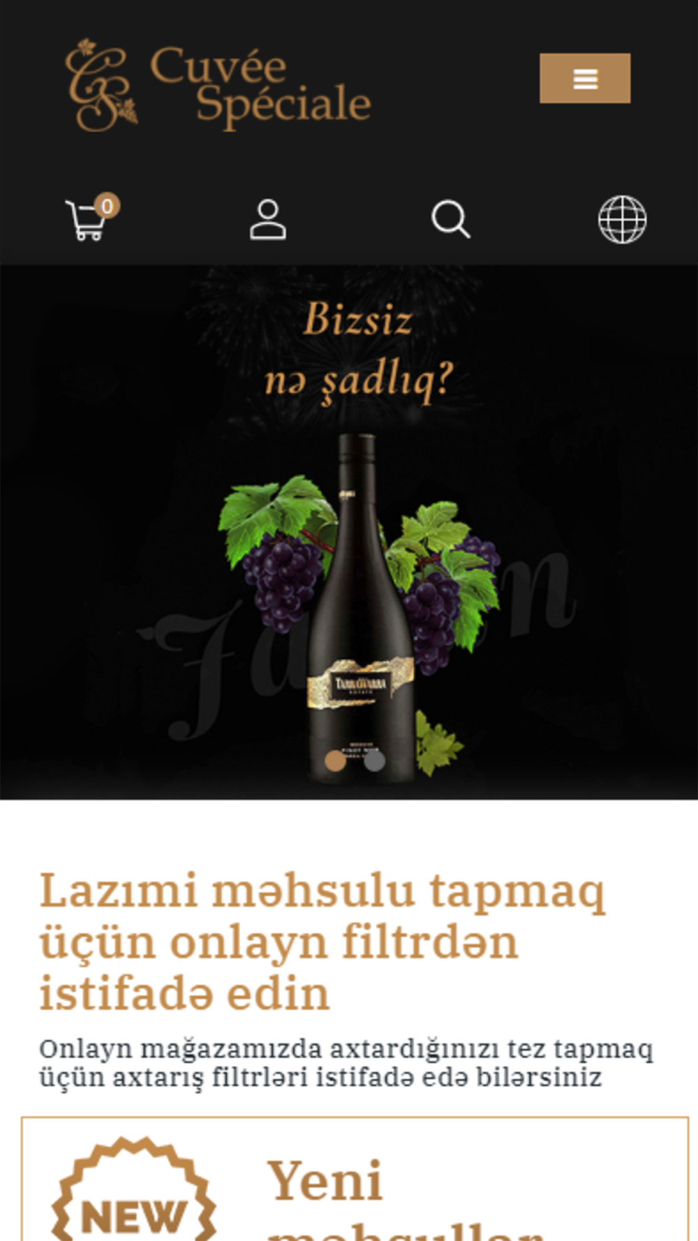 Cuvee Speciale - первый азербайджанской онлайн магазин алкогольных напитков премиум класса. Оригинальный продукт, гарантированное качество и цены без промежуточных наценок - три фундаментальных принципа функционирования Cuvee Speciale. Доверие клиента - самое дорогое наше достояние..